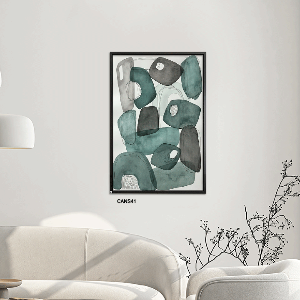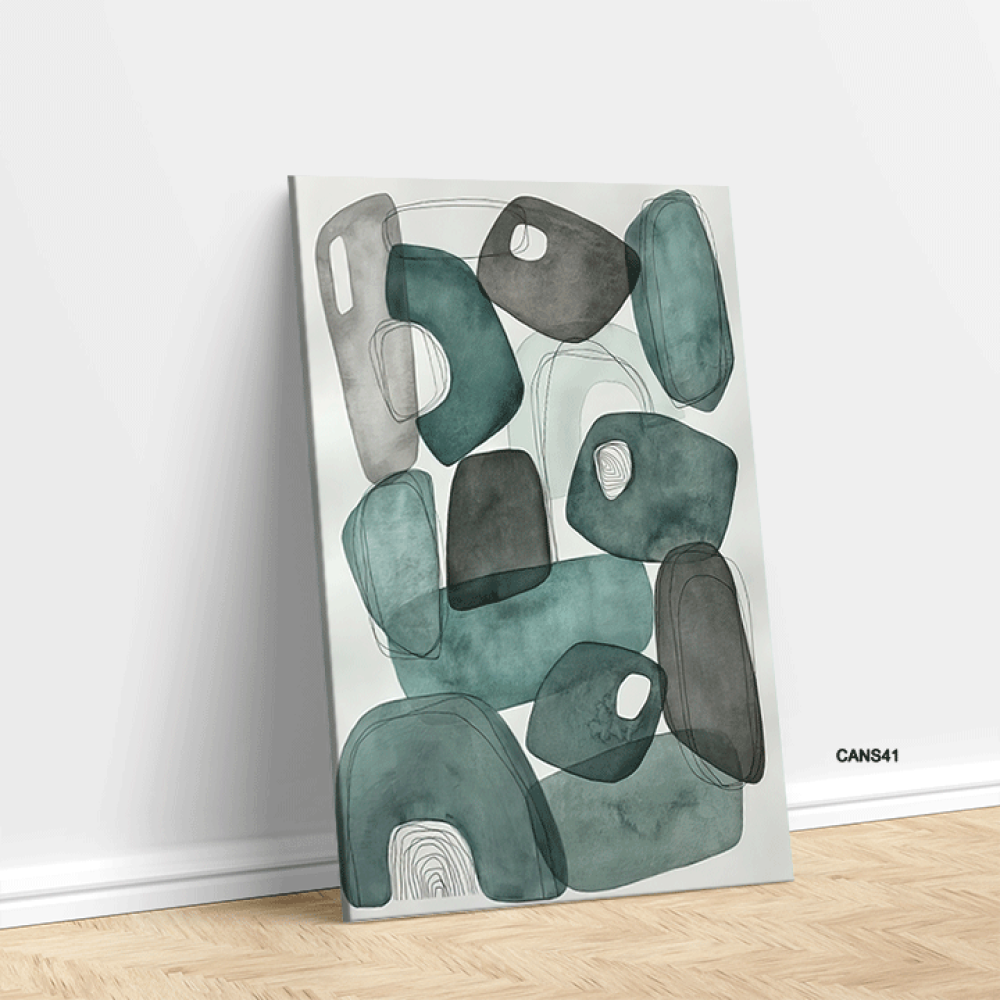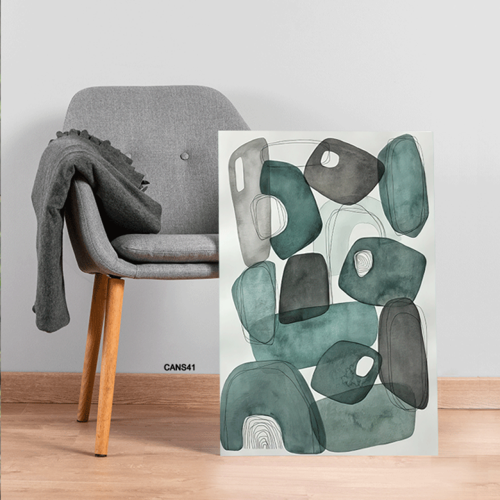 لوحة جدارية كانفس أشكال تدرجات أخضر مع أبيض