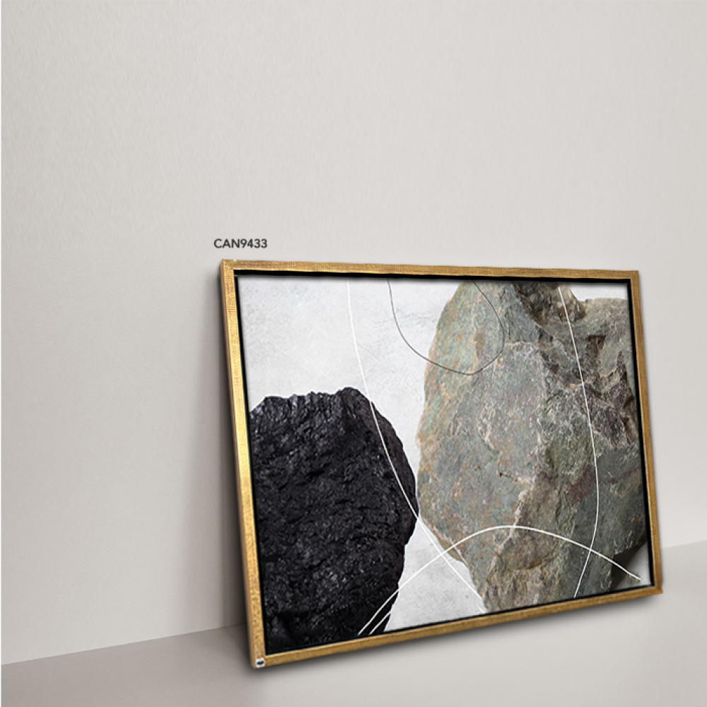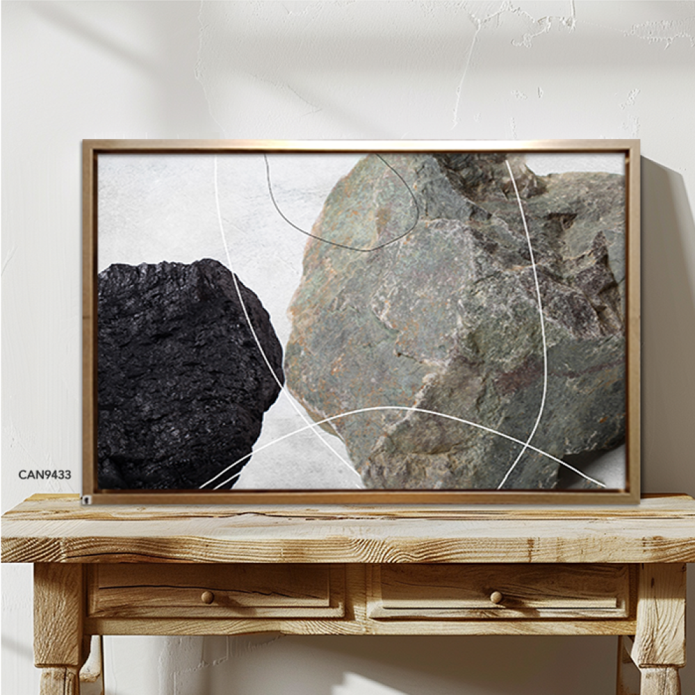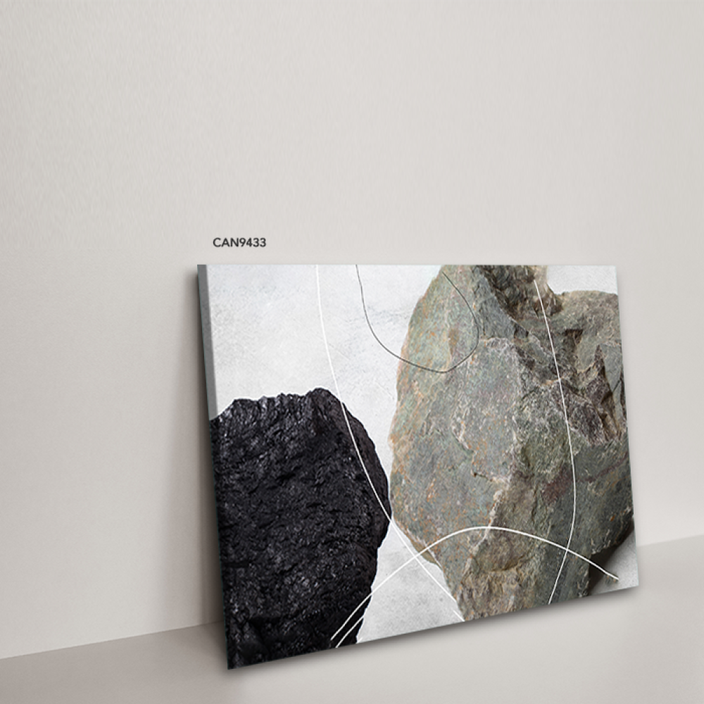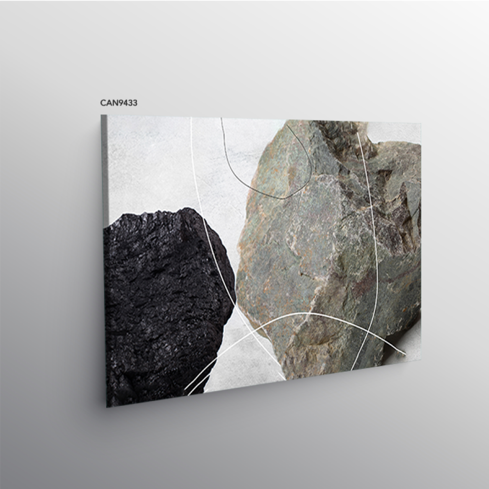 لوحة جدارية كانفس أحجار اللون الأسود والرمادي مع الأبيض