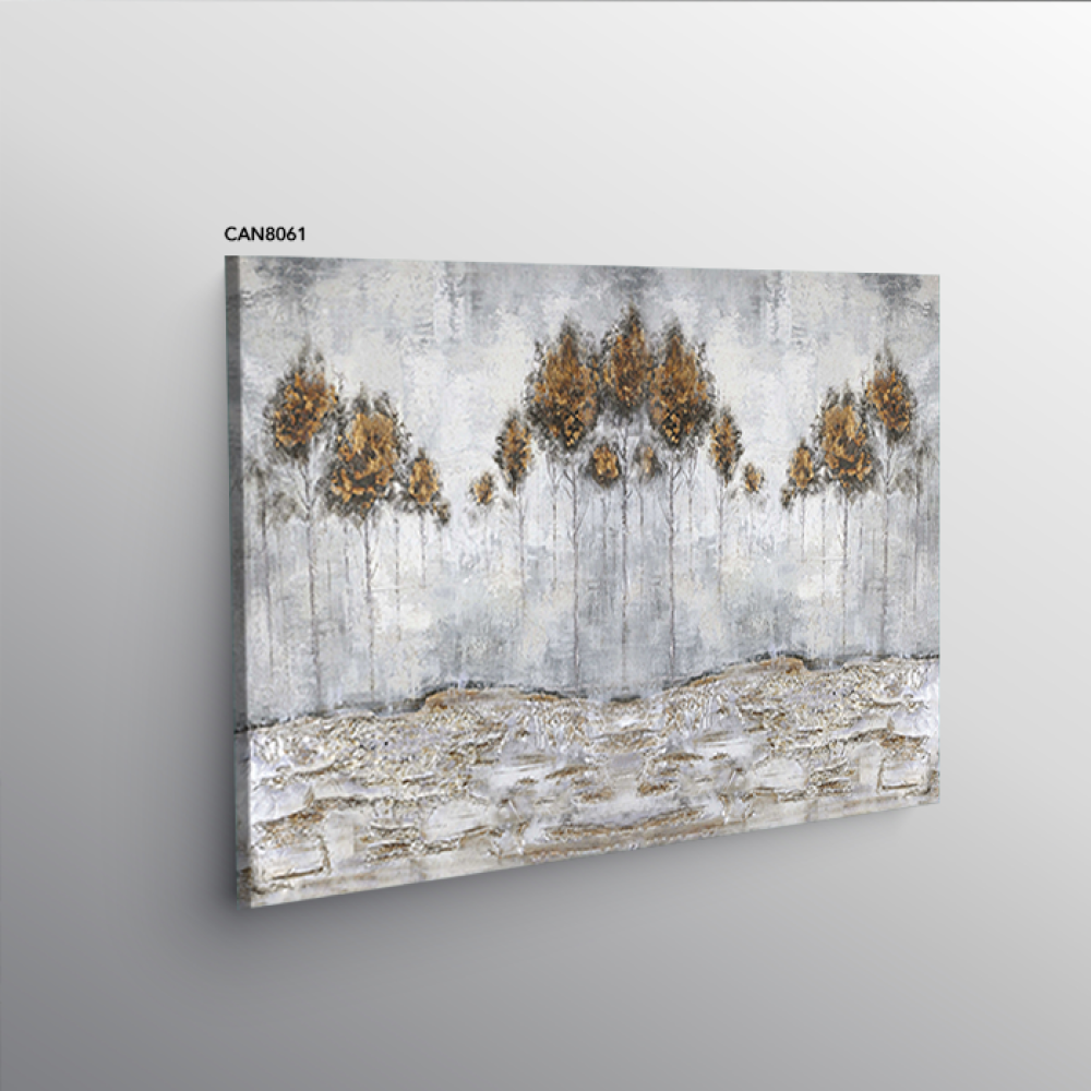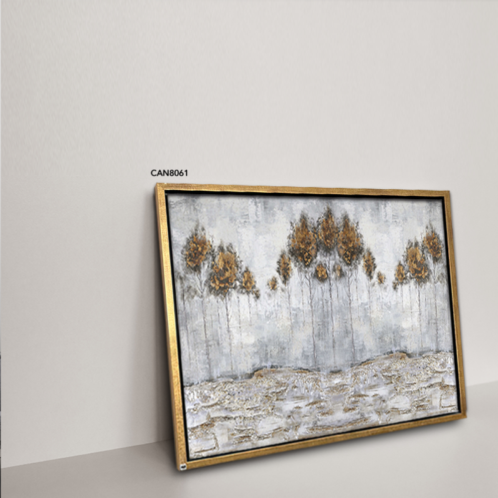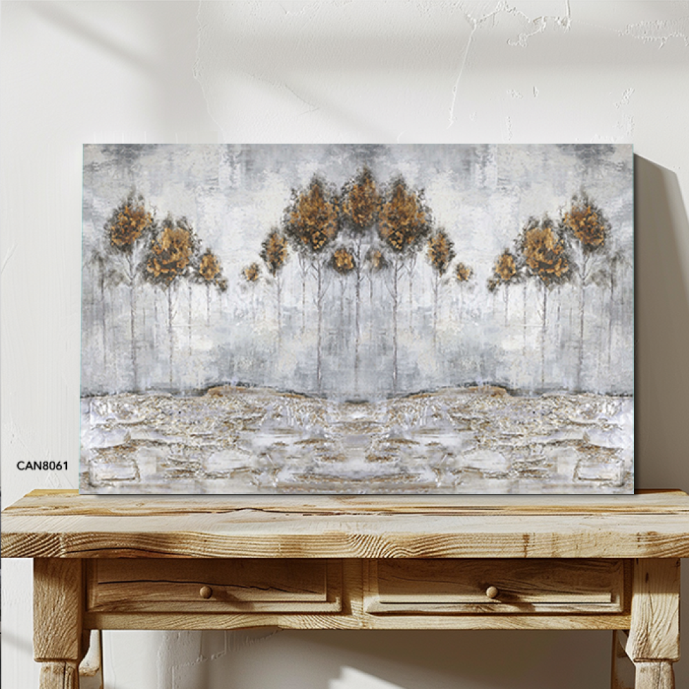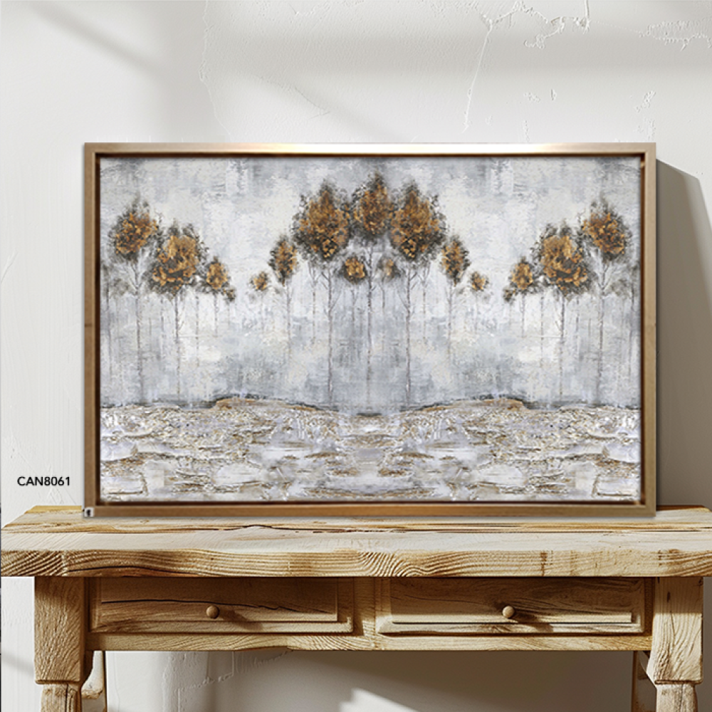 لوحة جدارية كانفس أشجار تدرجات الذهبي والبني مع الرمادي