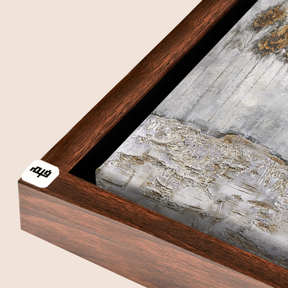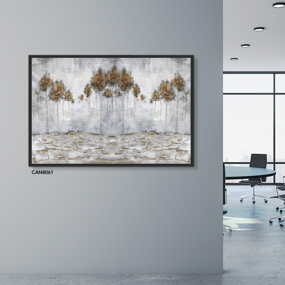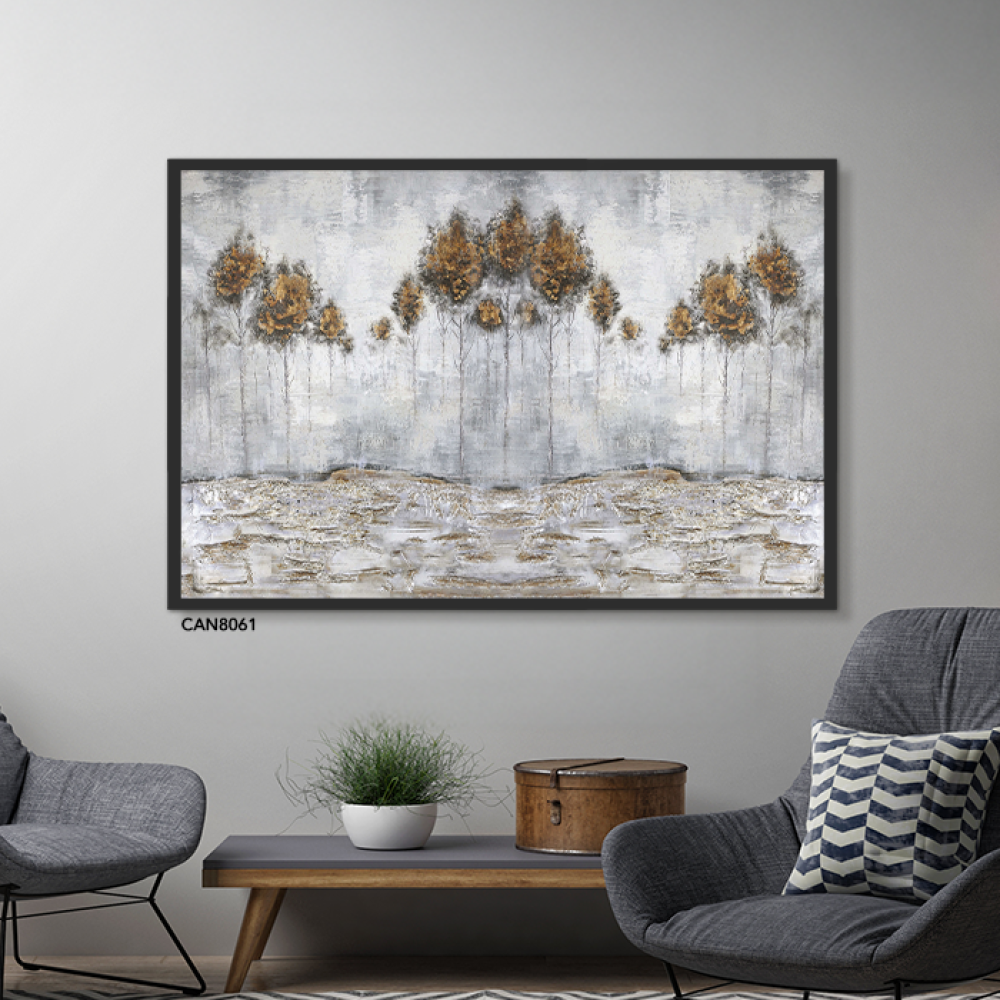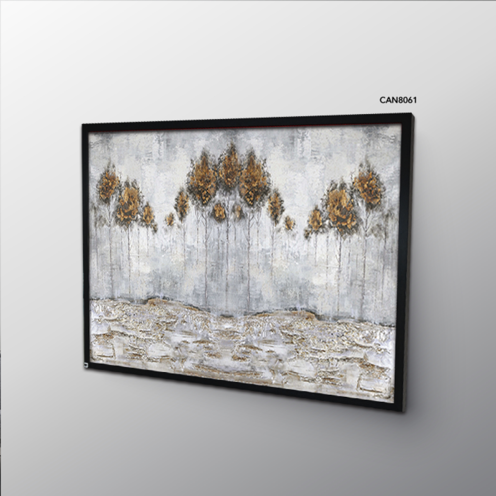 لوحة جدارية كانفس أشجار تدرجات الذهبي والبني مع الرمادي