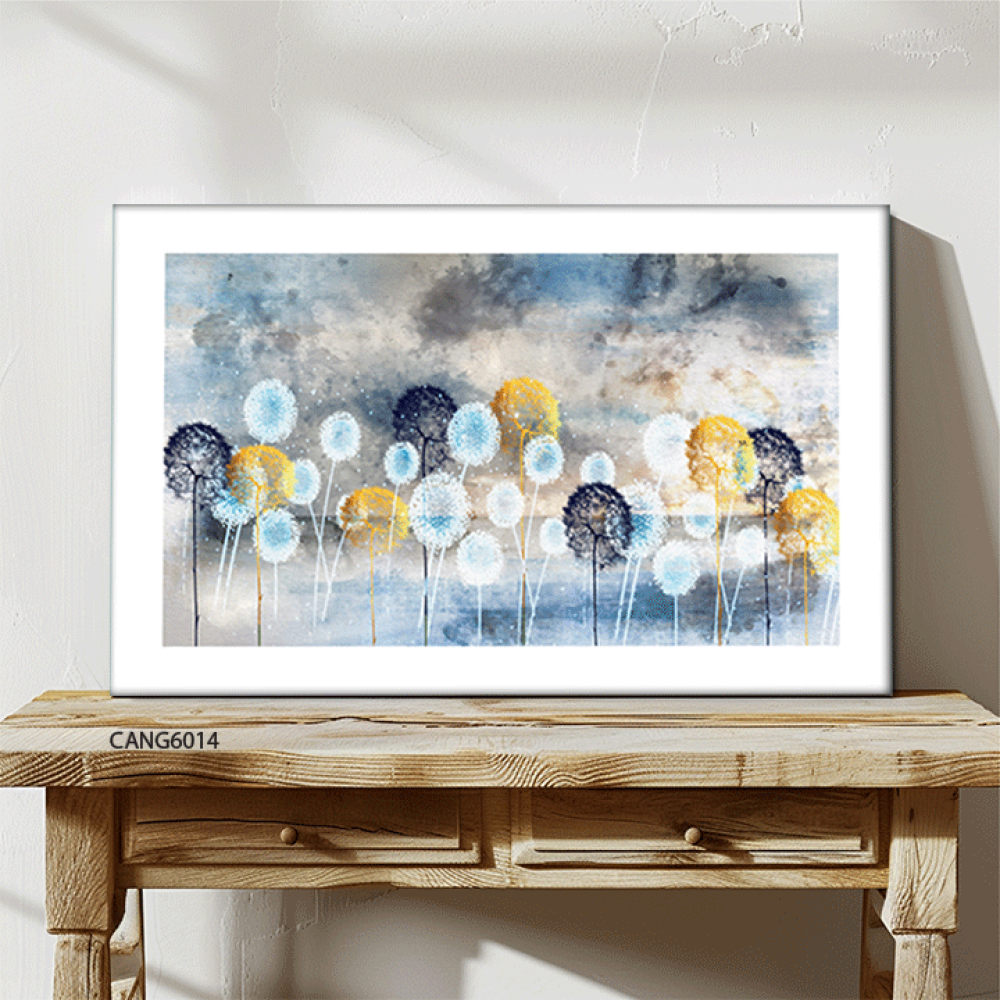 لوحة جدارية كانفس ورود دائرية بألوان مائية تدرجات الذهبي وأزرق وأبيض ورمادي