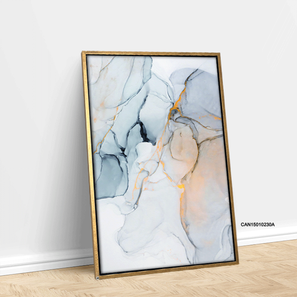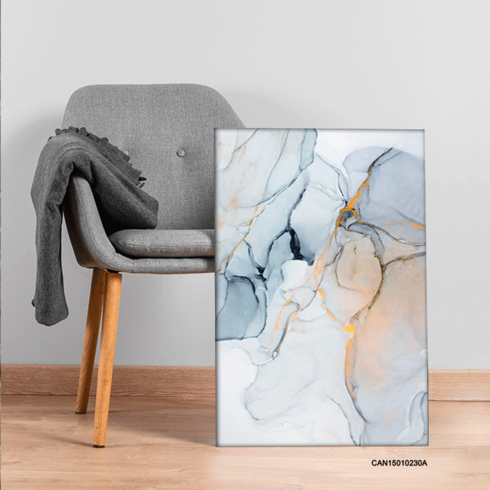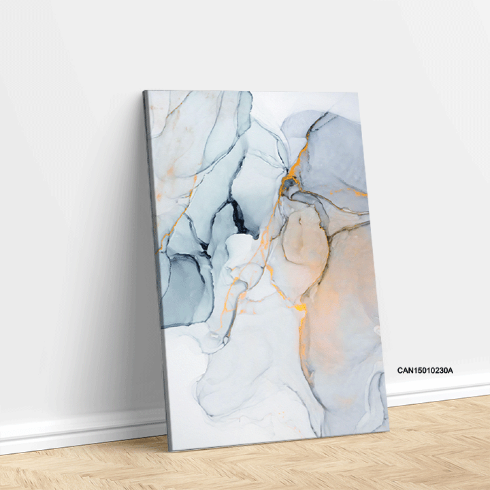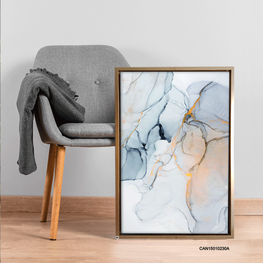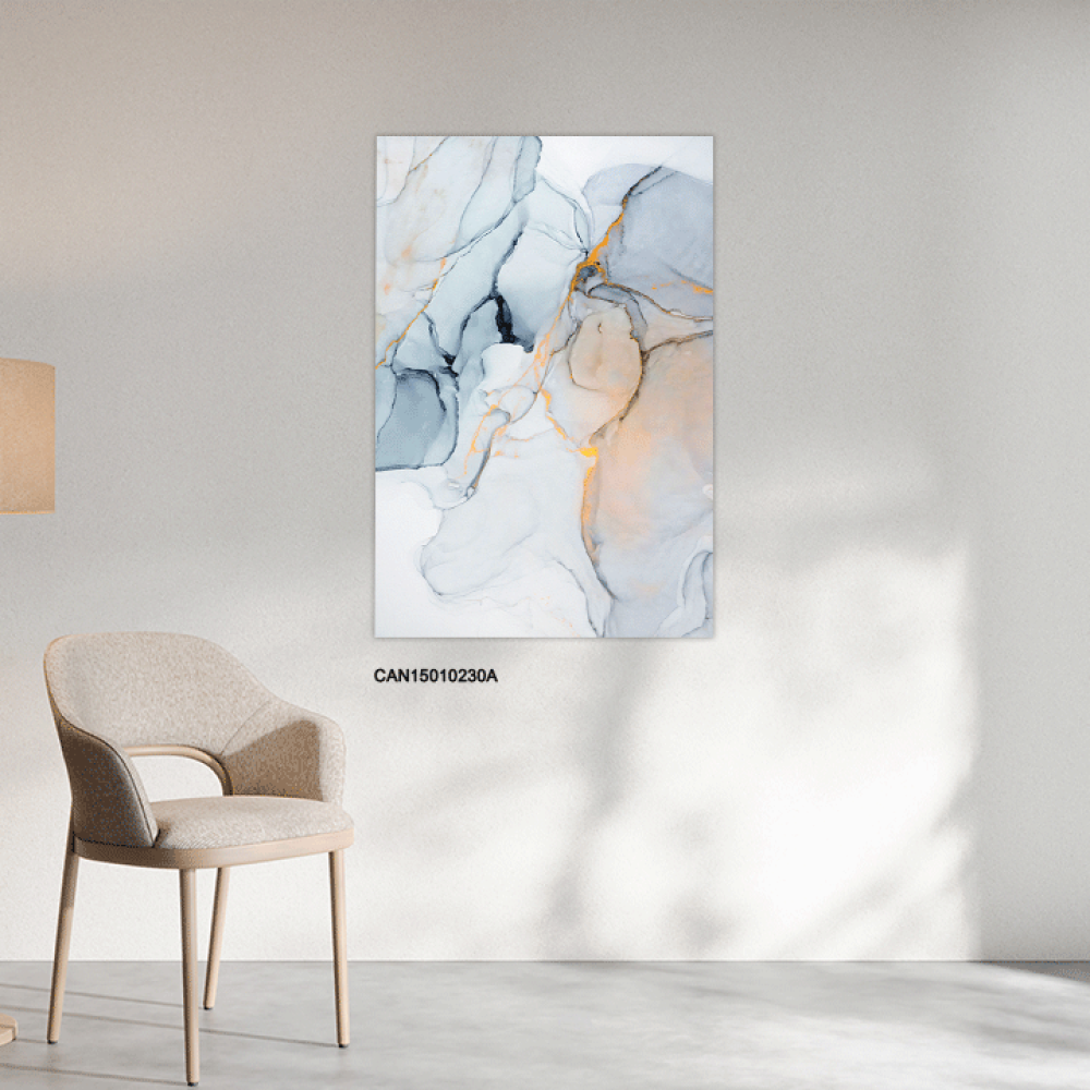 لوحة فنية جدارية كانفس ، طابع رخامي تموجات -درجات الأزرق والبيج
