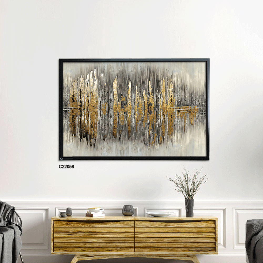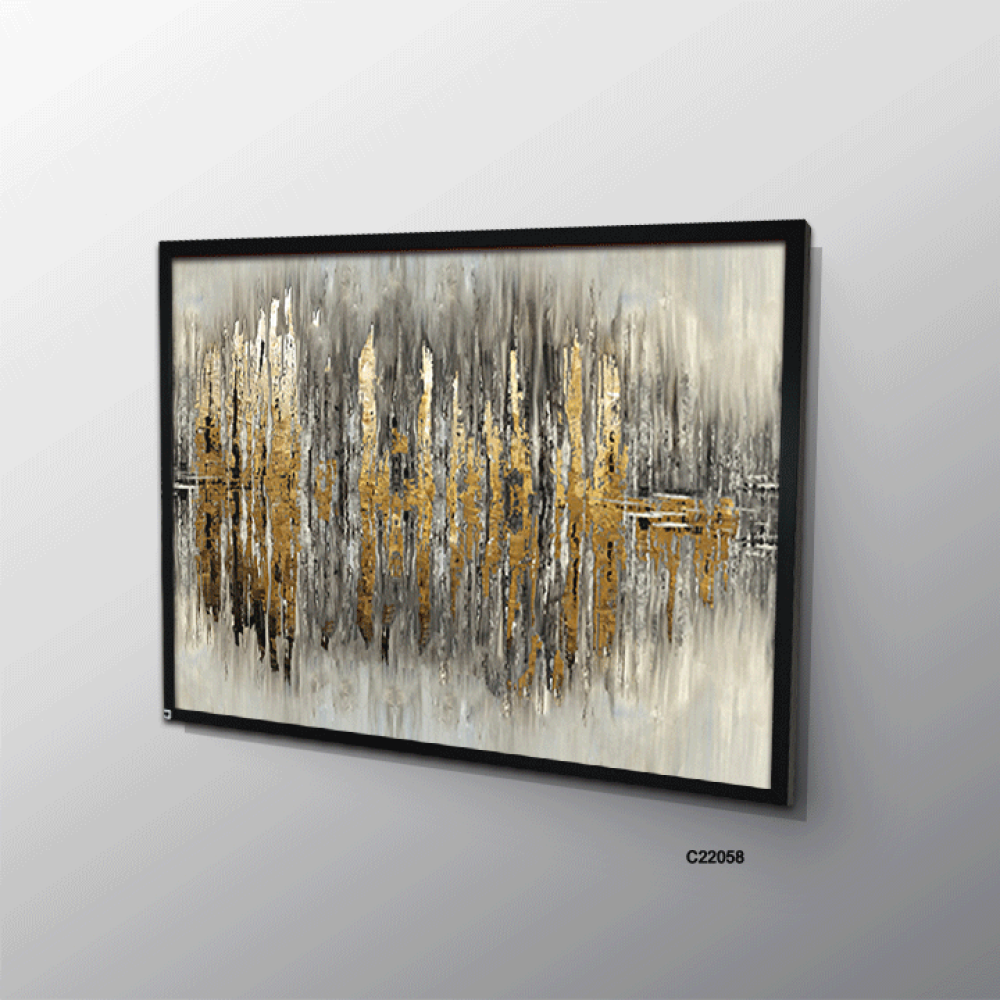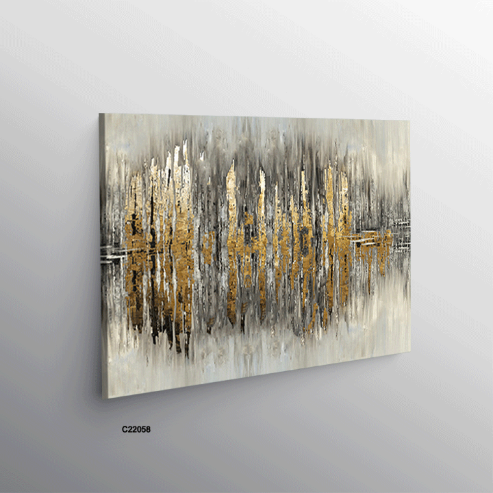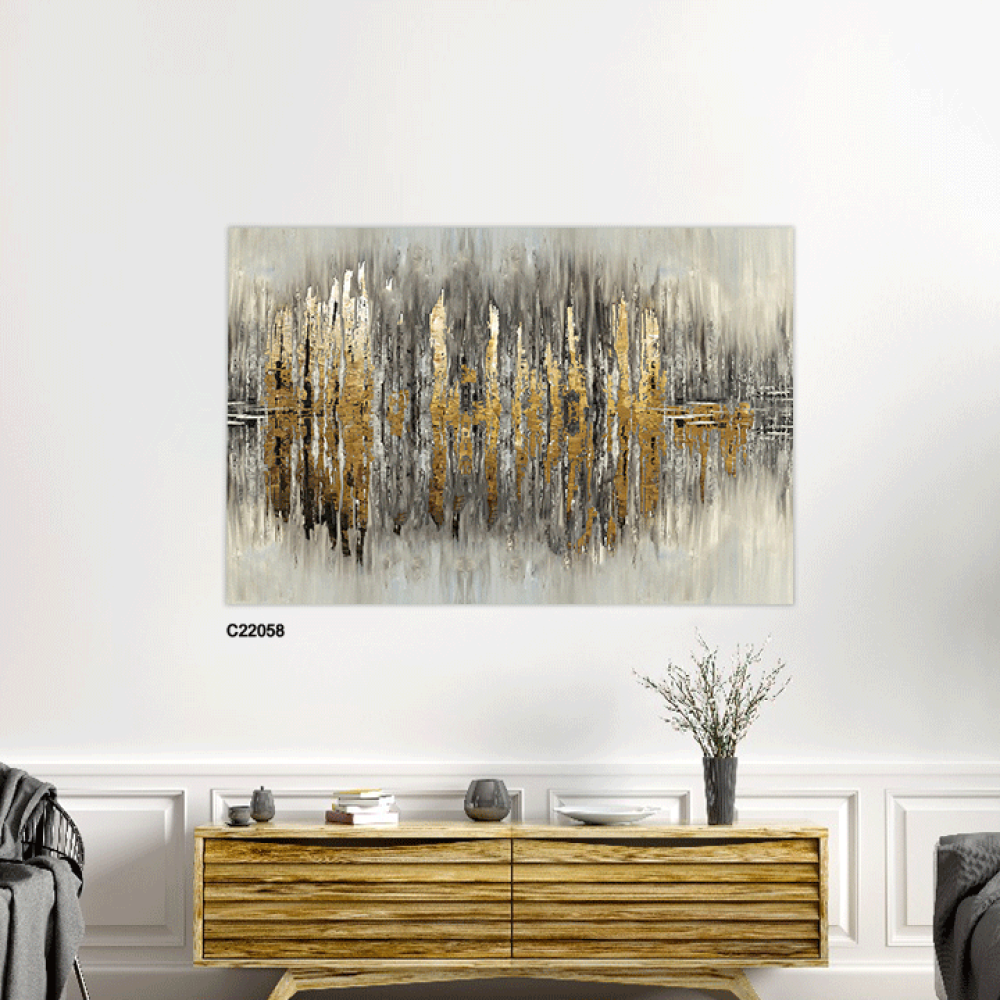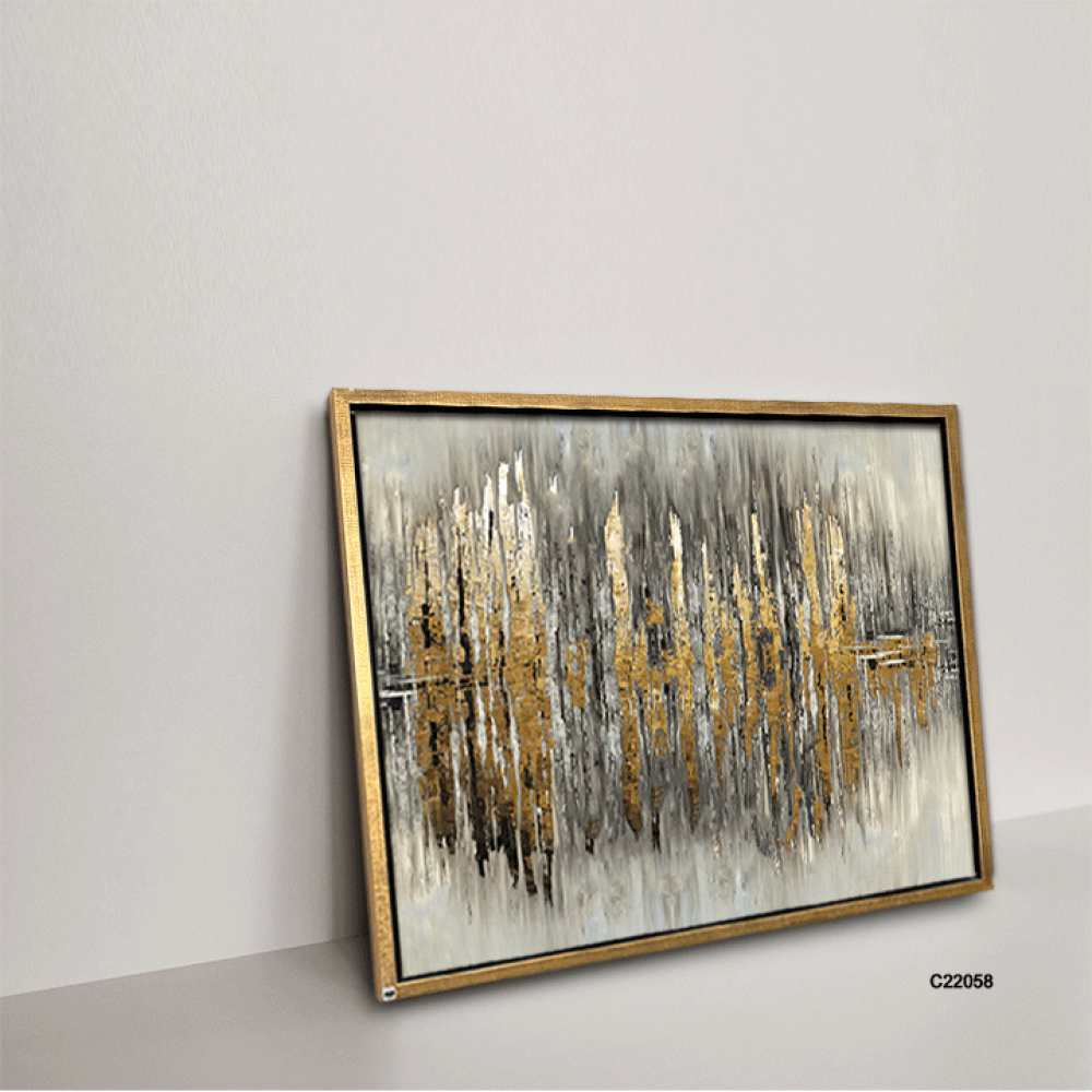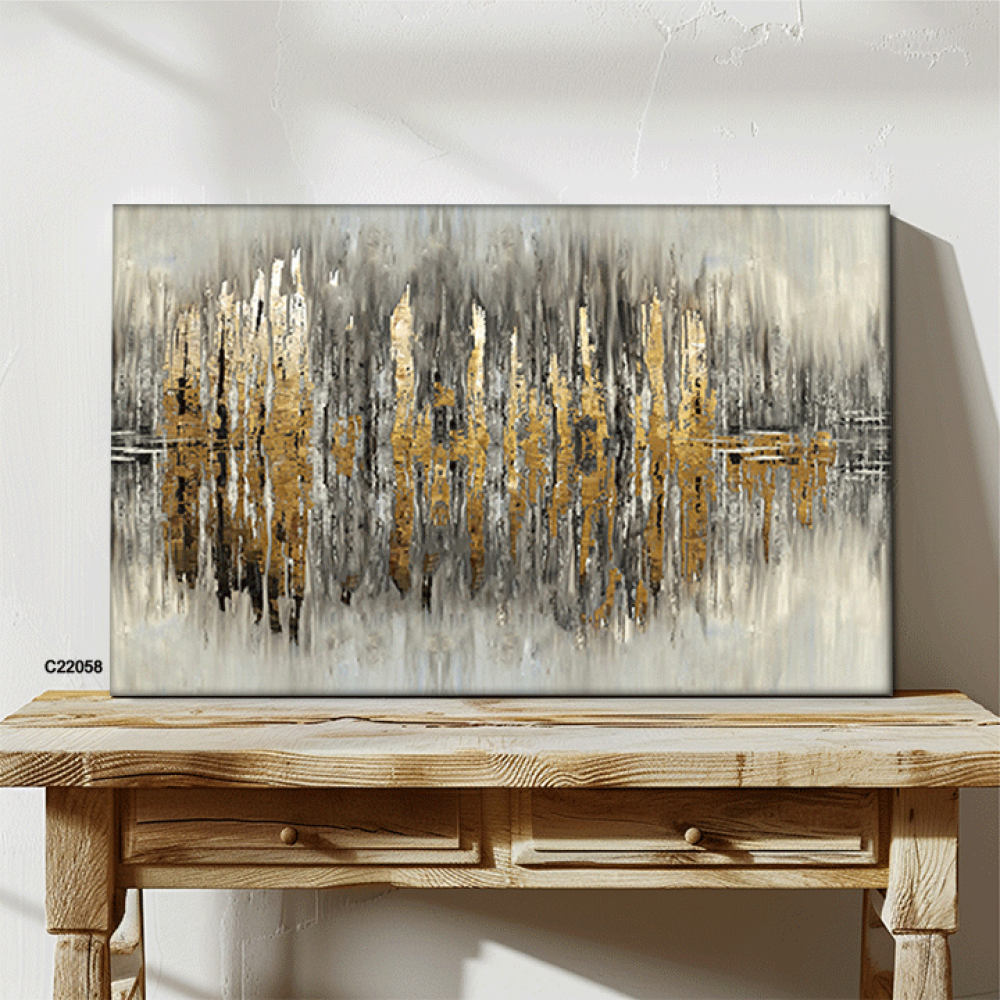 لوحة فنية جدارية كانفس ، تداخل ألوان - تدرجات البني والذهبي مع البيج والرمادي - فن تجريدي