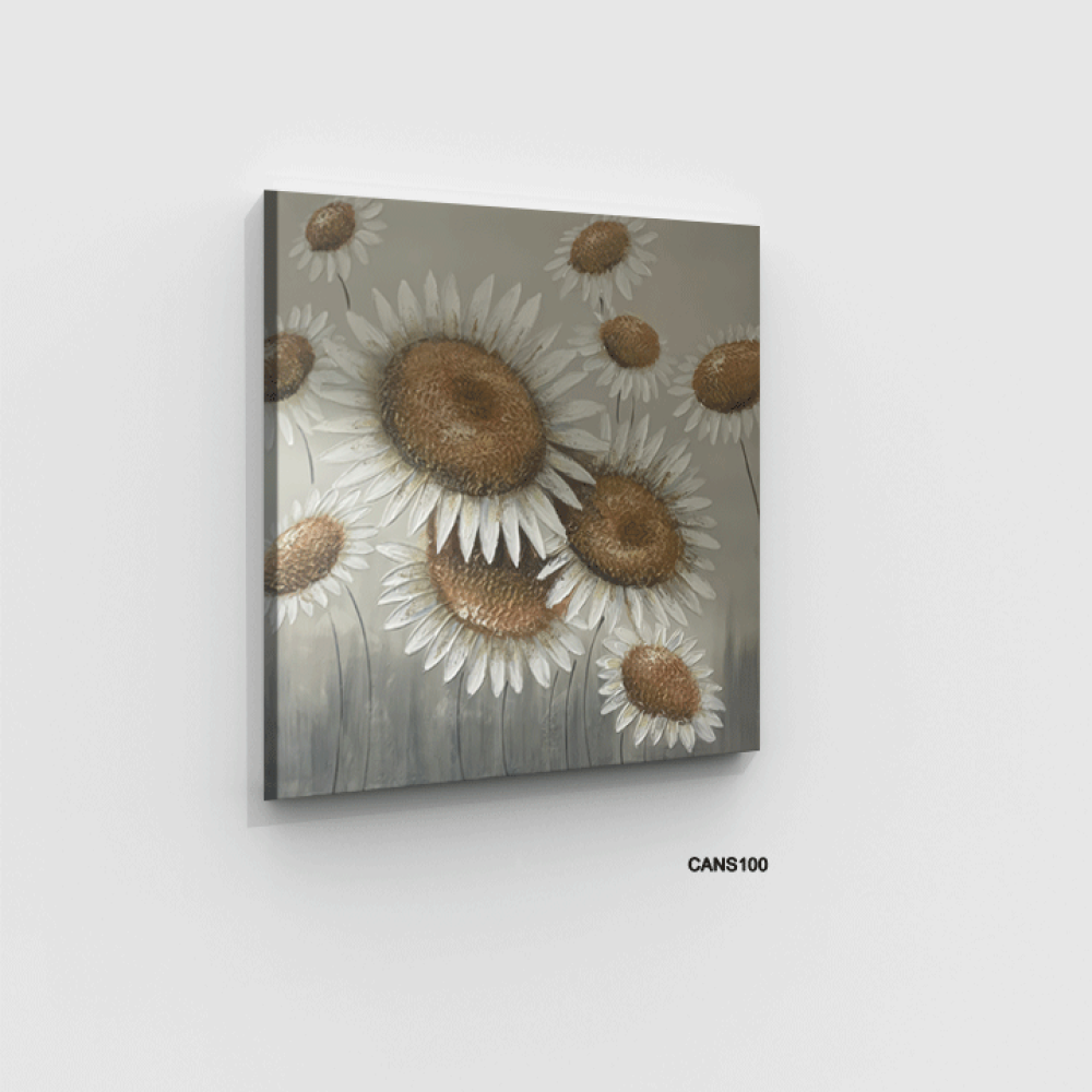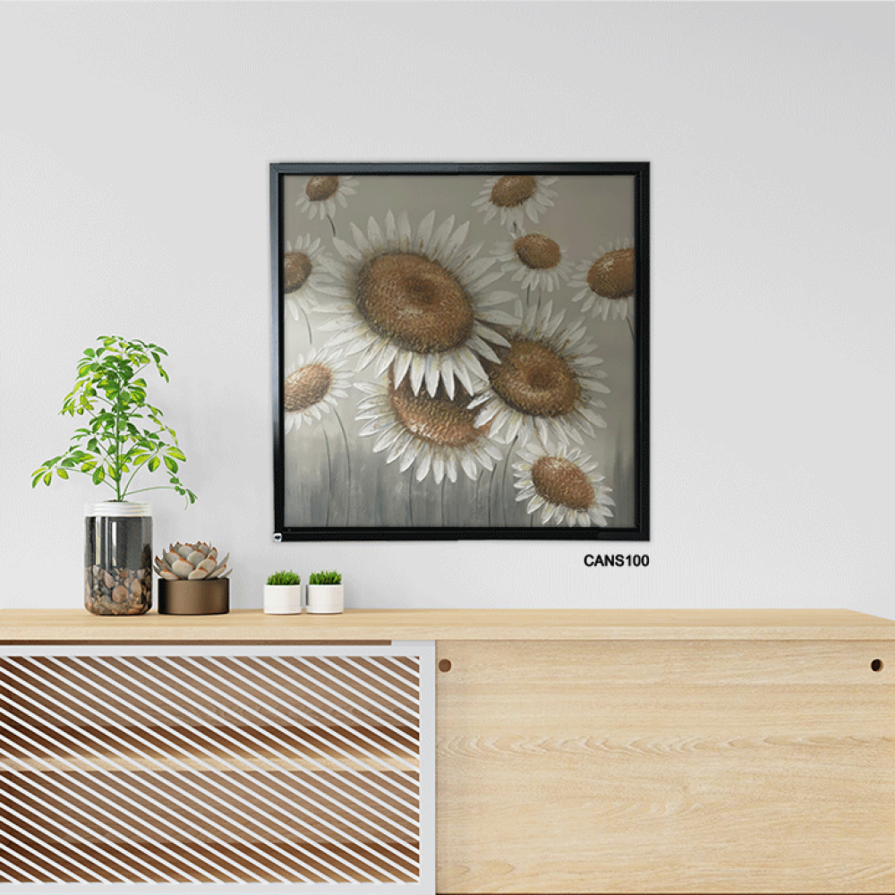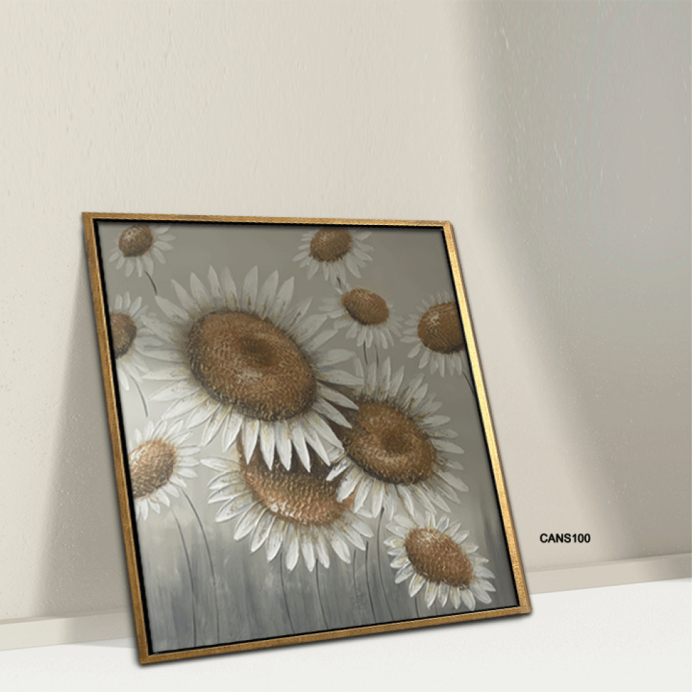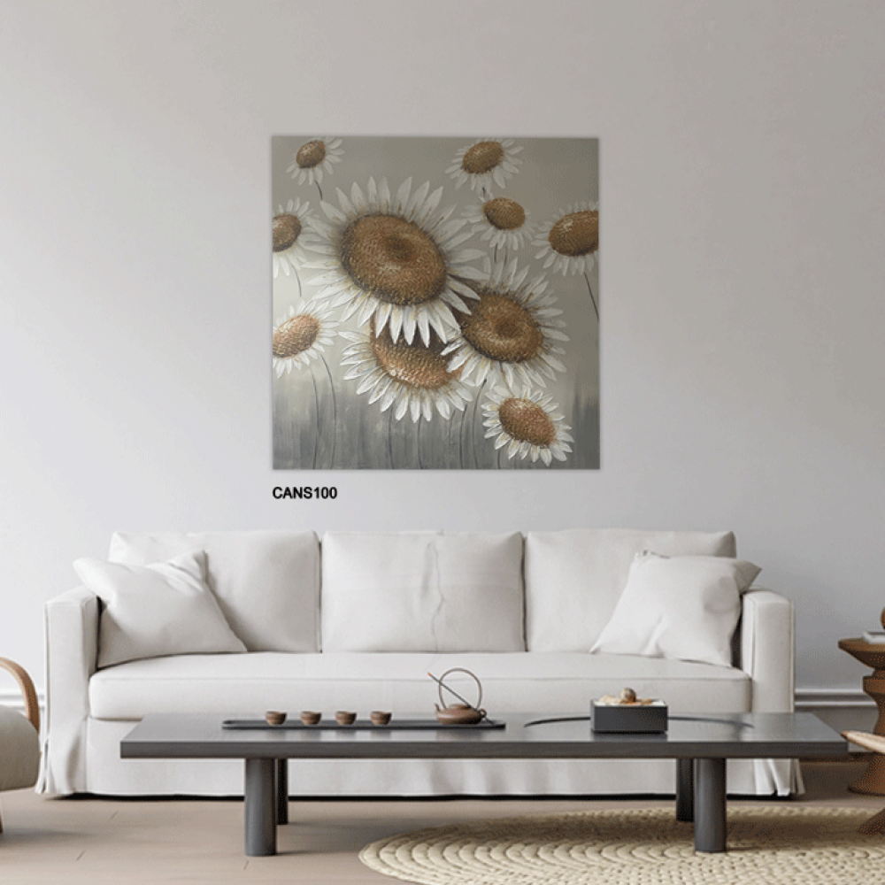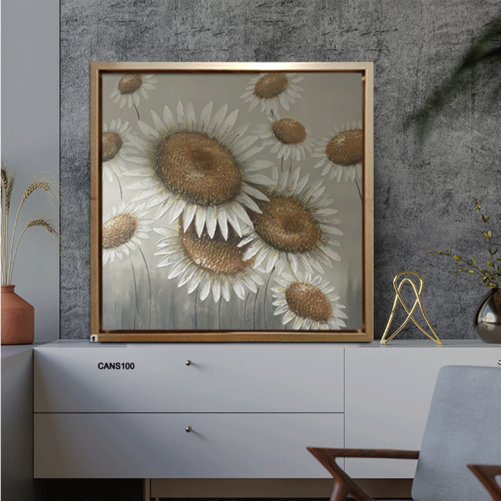 لوحة جدارية كانفس ورود اقحوان تدرجات البني مع الأبيض والرمادي