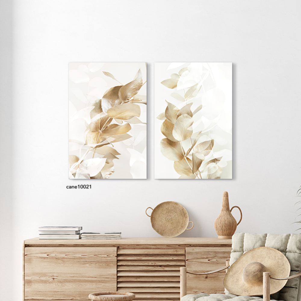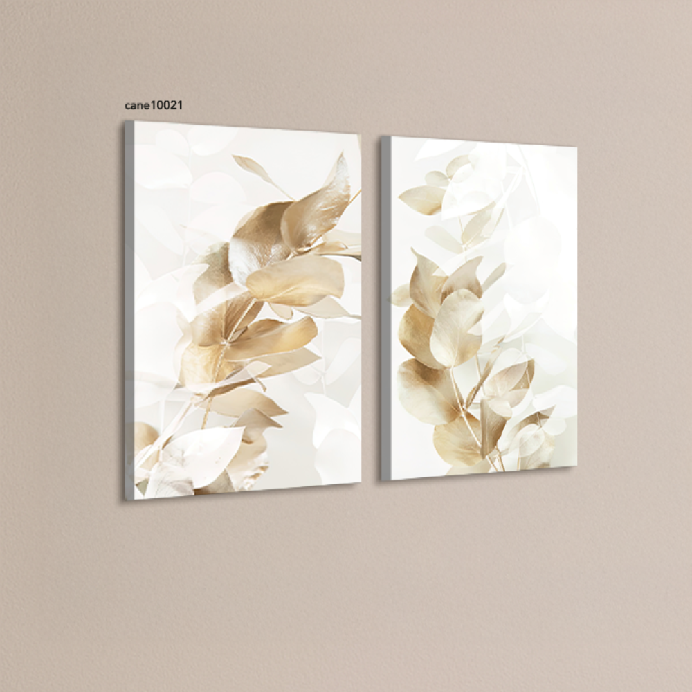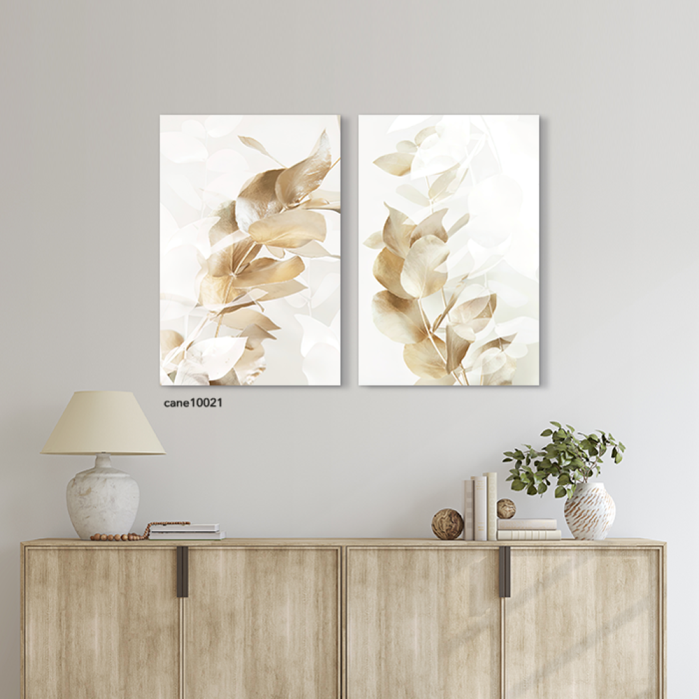 لوحة جدارية كانفس مقسمة أوراق شجر تدرجات الذهبي والبني مع البيج