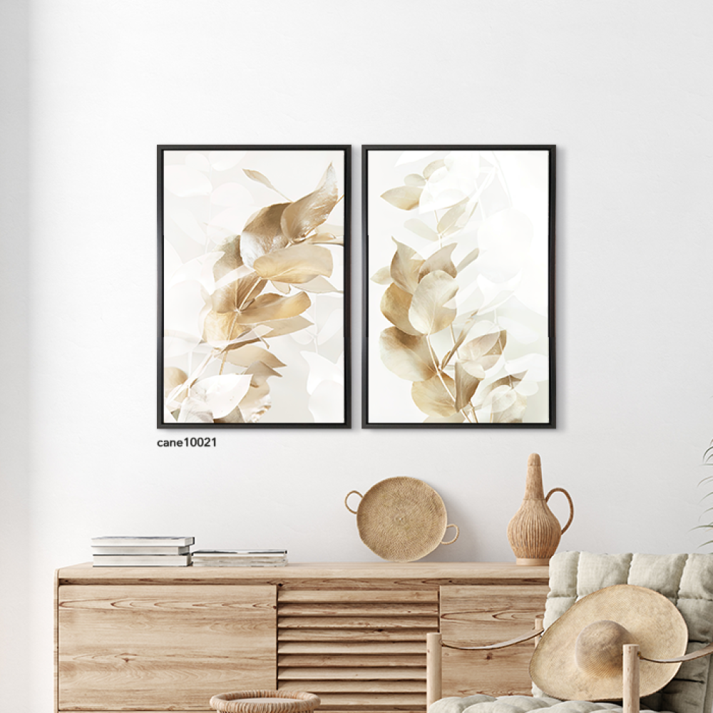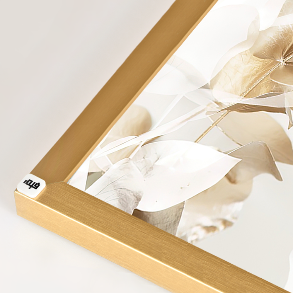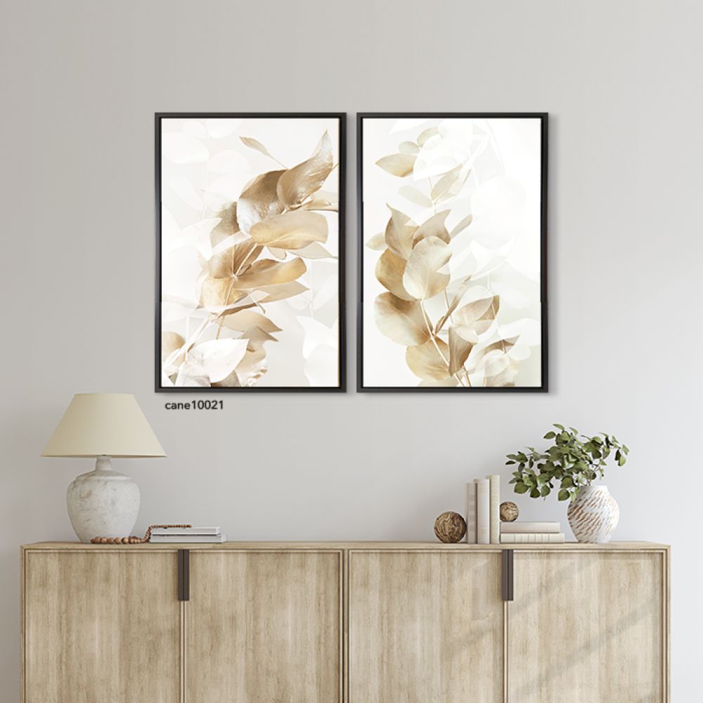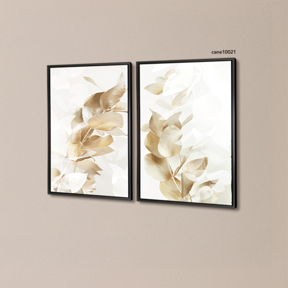 لوحة جدارية كانفس مقسمة أوراق شجر تدرجات الذهبي والبني مع البيج