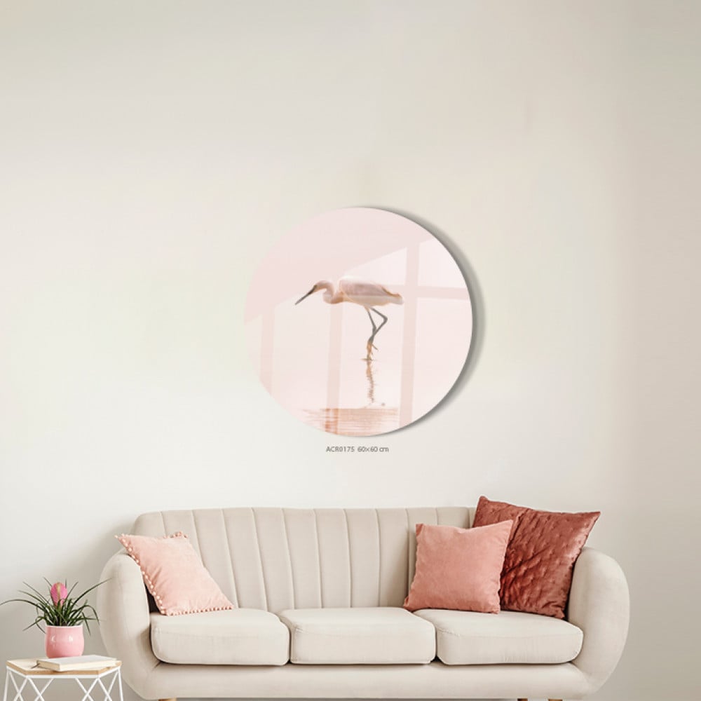 أضف لمسة من الأناقة والهدوء إلى مساحتك مع هذه اللوحة الجدارية الأكريليك التي تتميز بتصميم دائري يحتوي على صورة فلامنغو بألوان الوردي والبيج. يعكس التص...