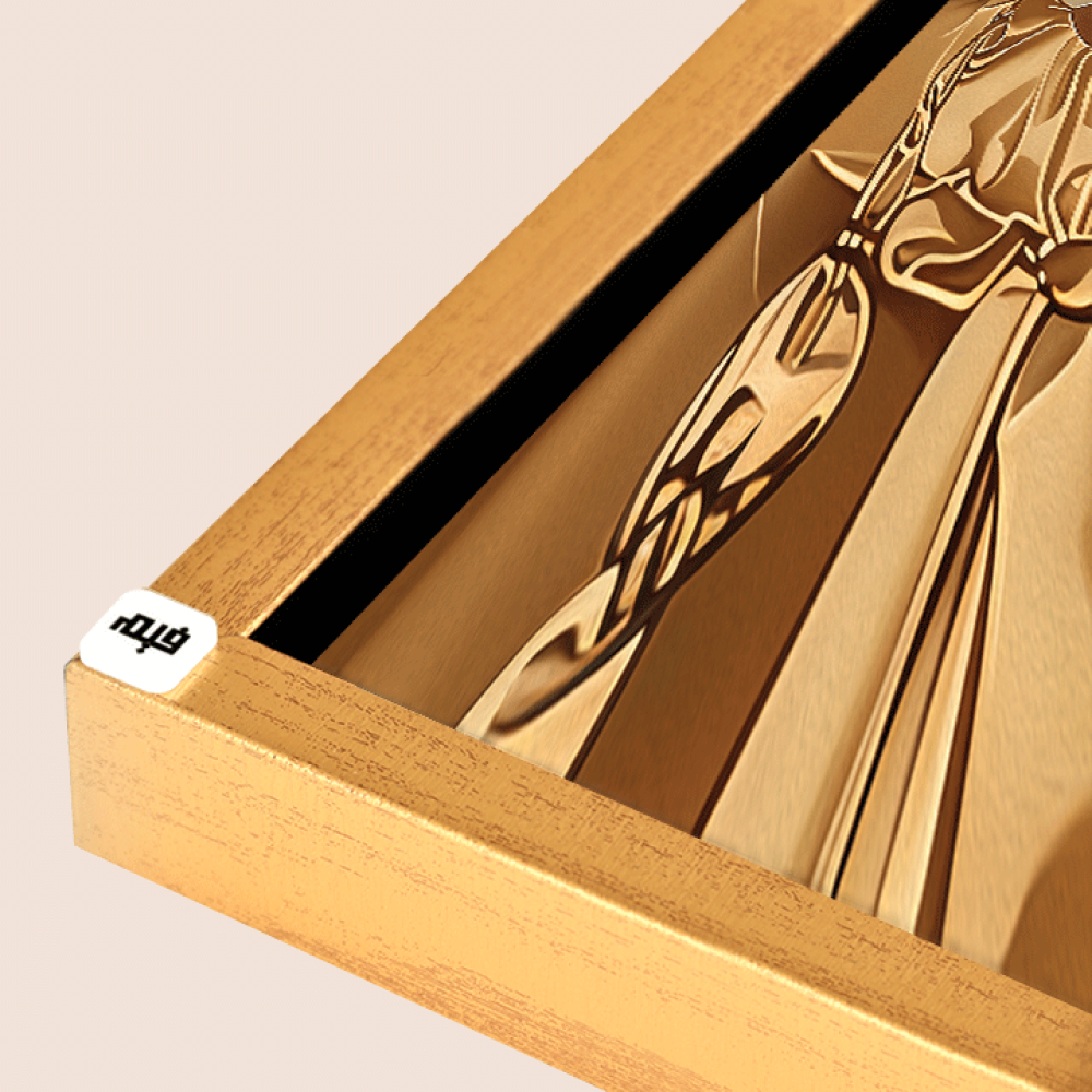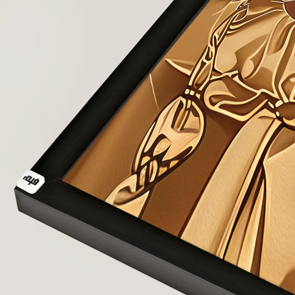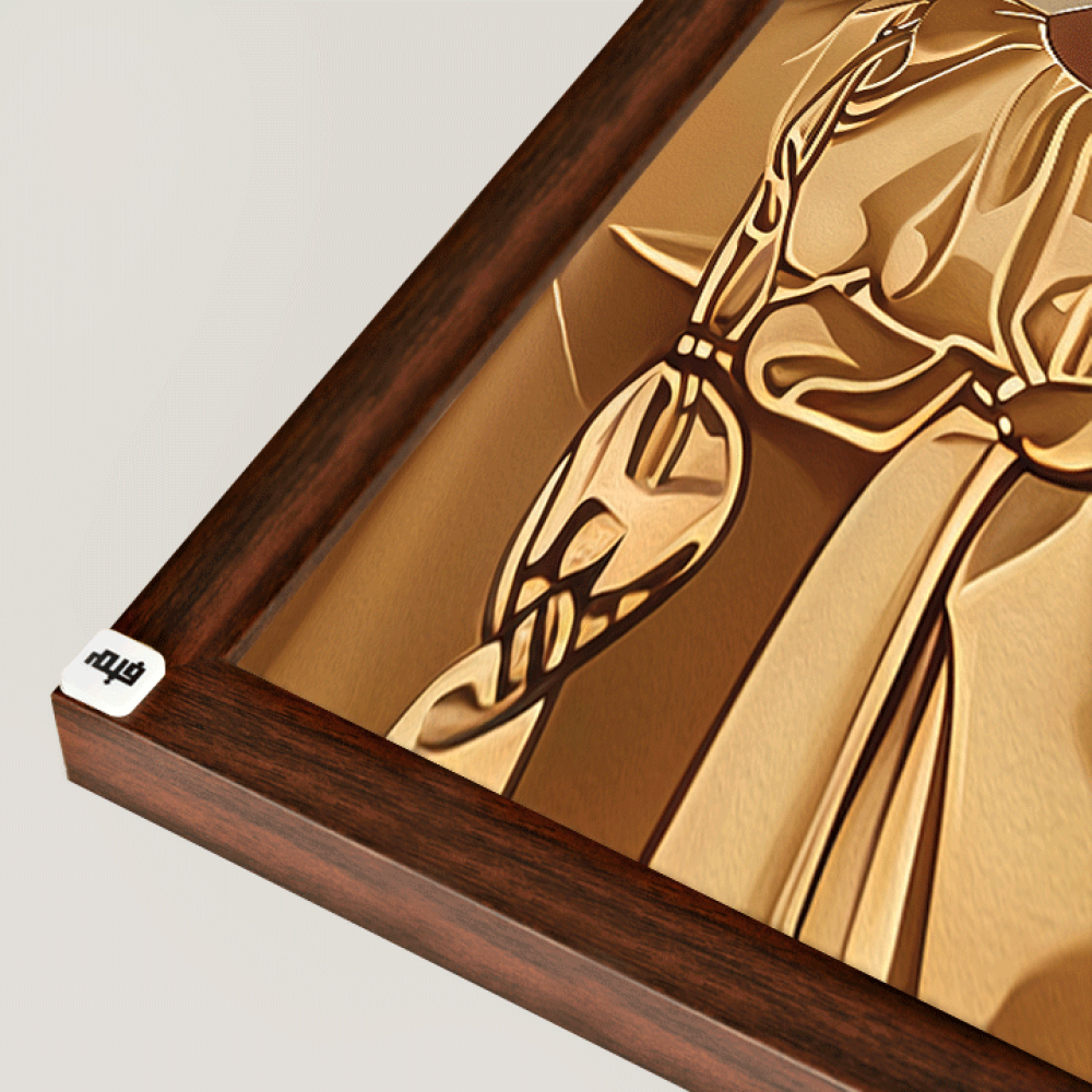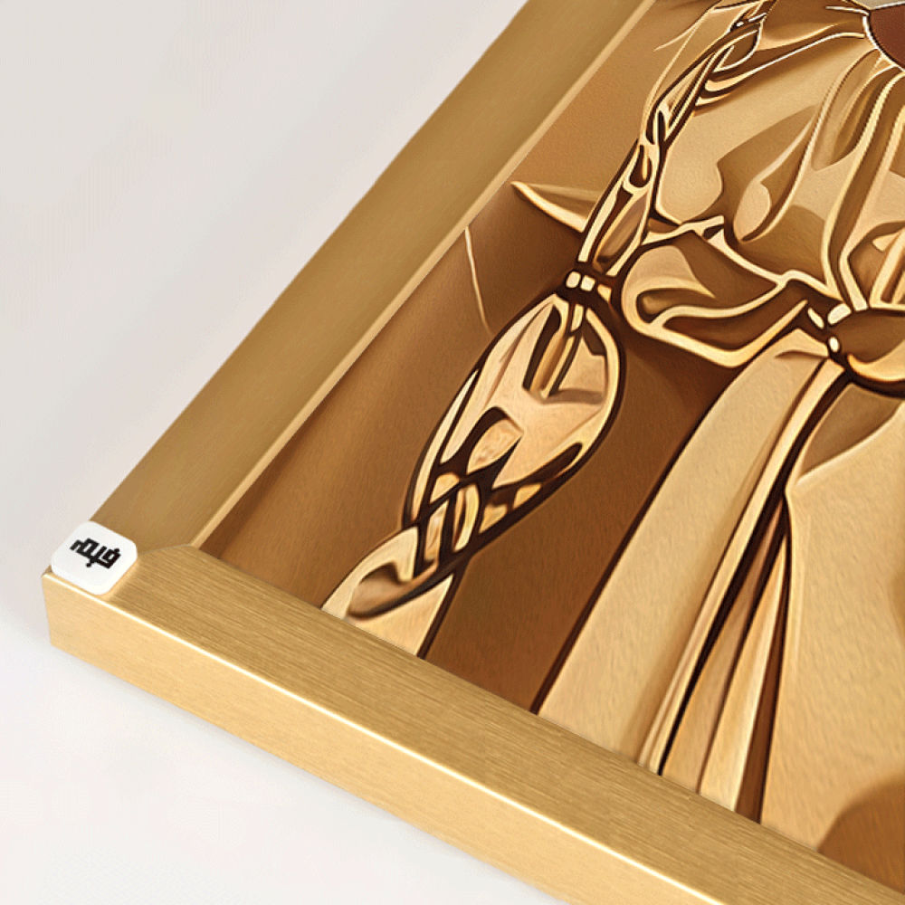 • خلفية اللوحة البسيطة تساهم في إبراز التفاصيل الذهبية والضفائر، مما يمنحها طابعًا مميزًا وفريدًا.