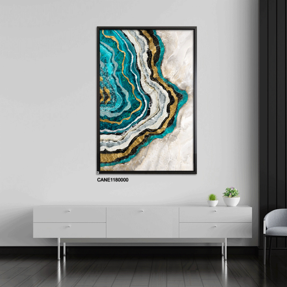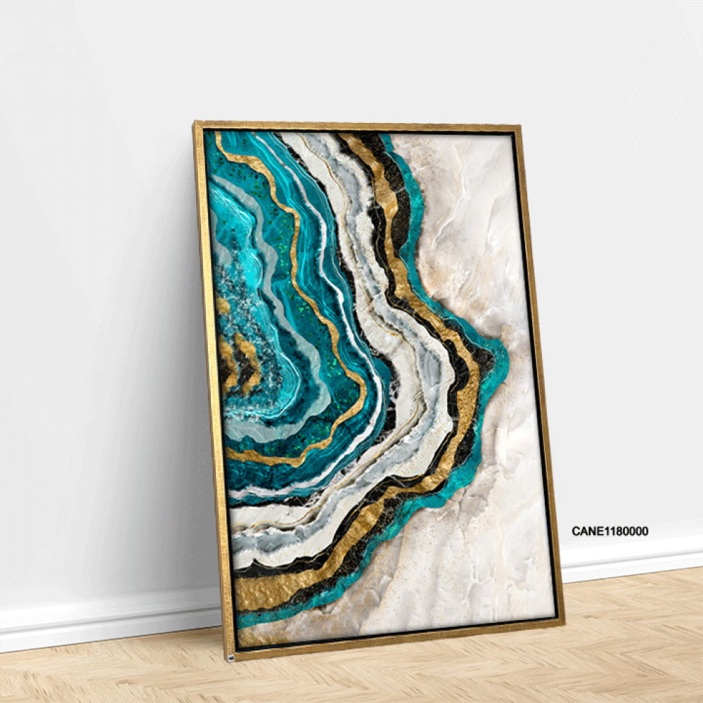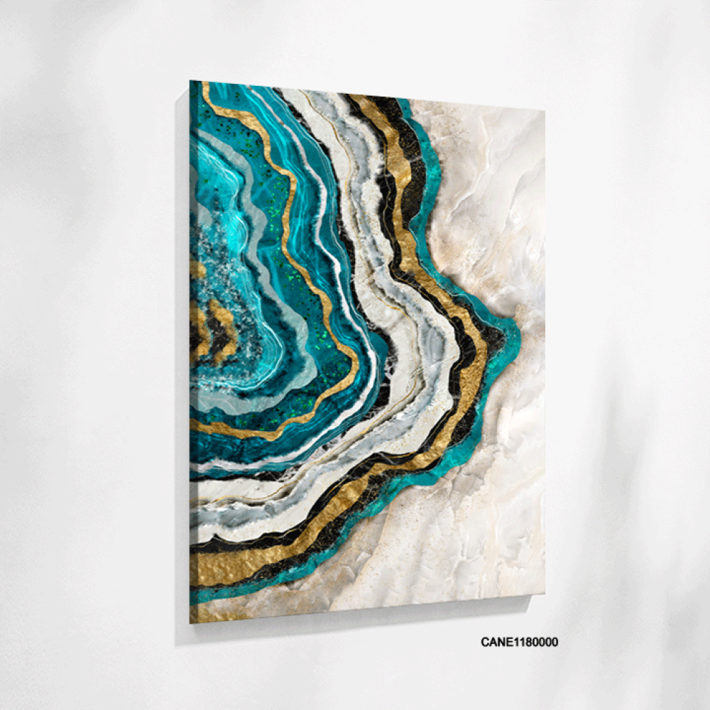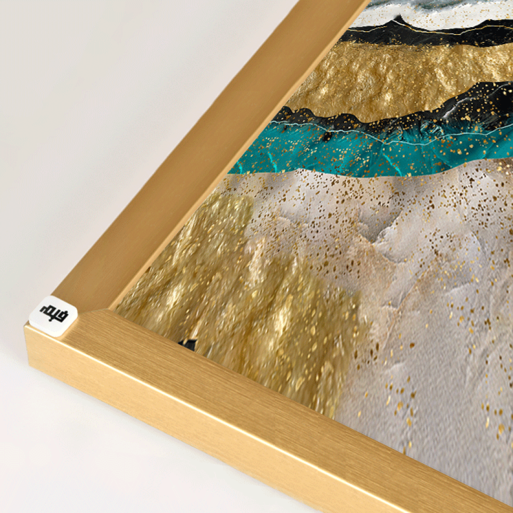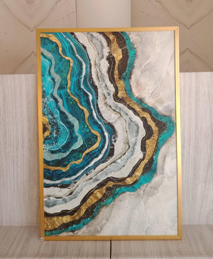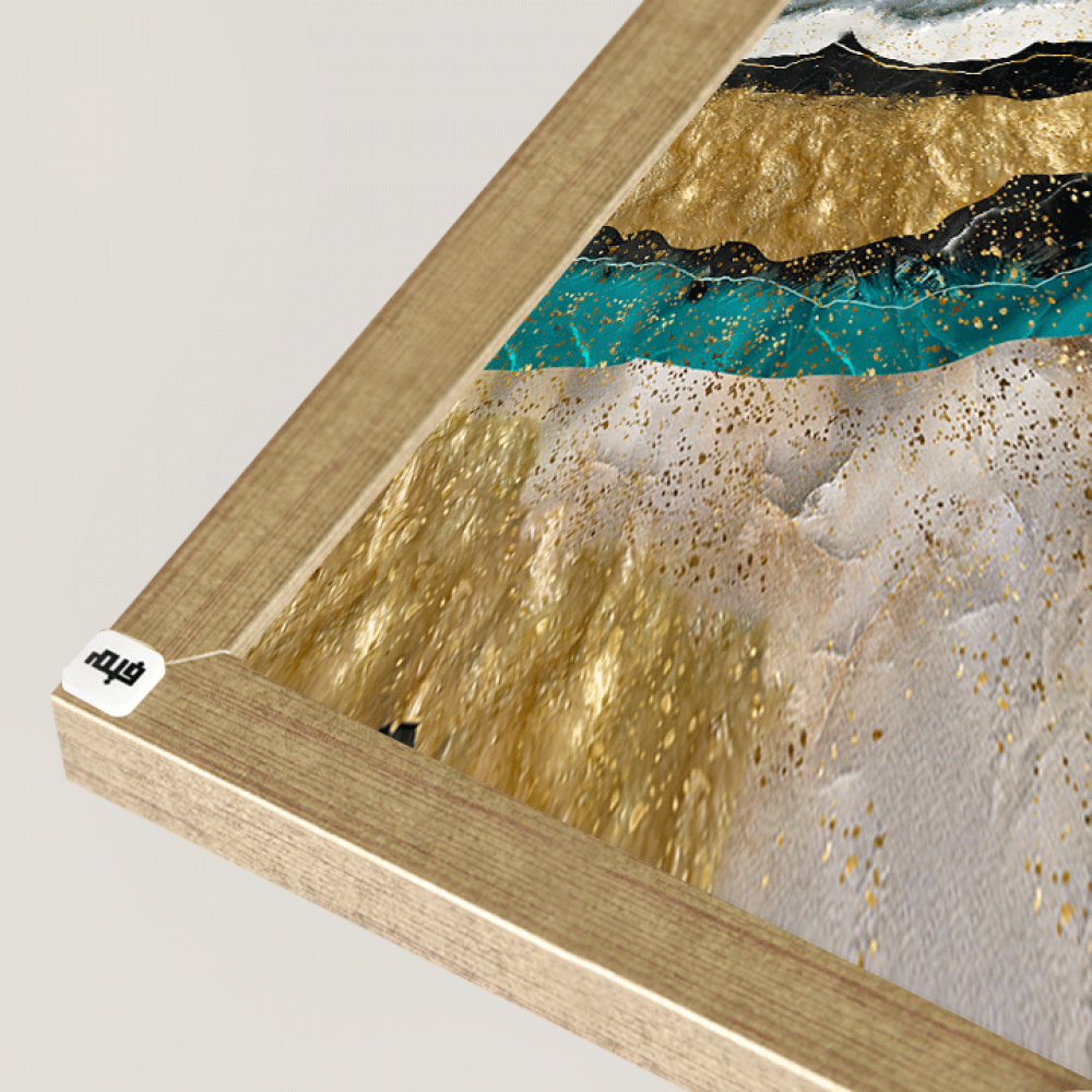 تتميز هذه اللوحة الفريدة بتصميمها المستوحى من التداخل البصري المذهل بين تدرجات الذهبي والأخضر التركواز مع الأسود والبيج، بتأثير أمواج إبداعي يعكس جوهر...