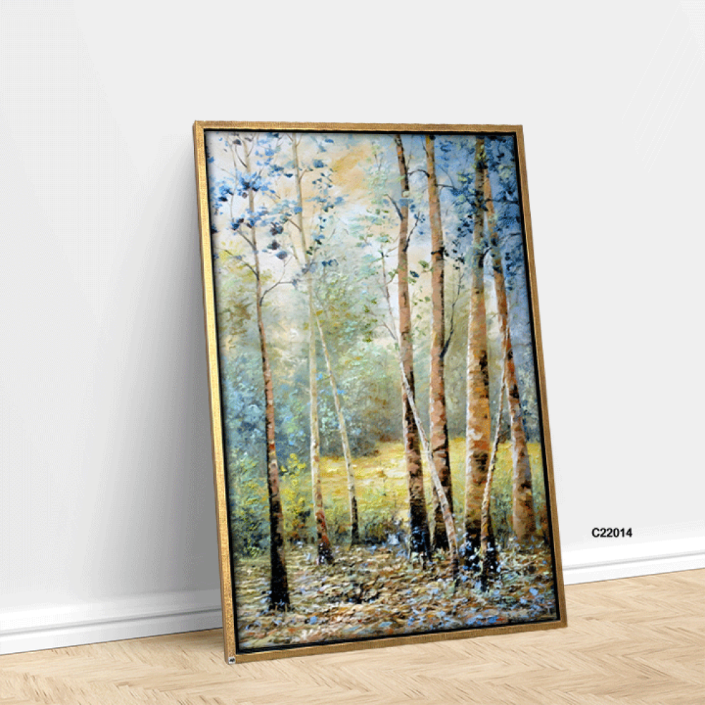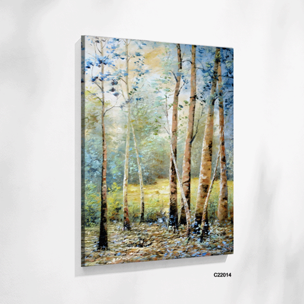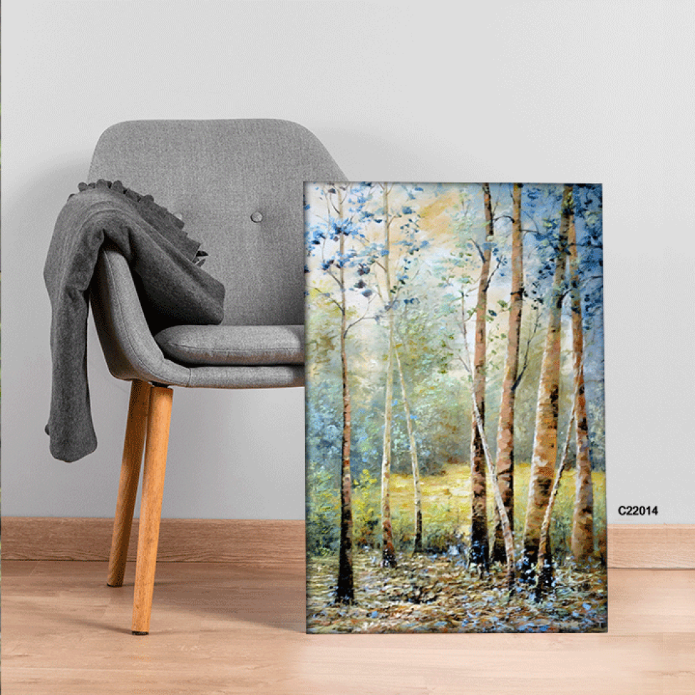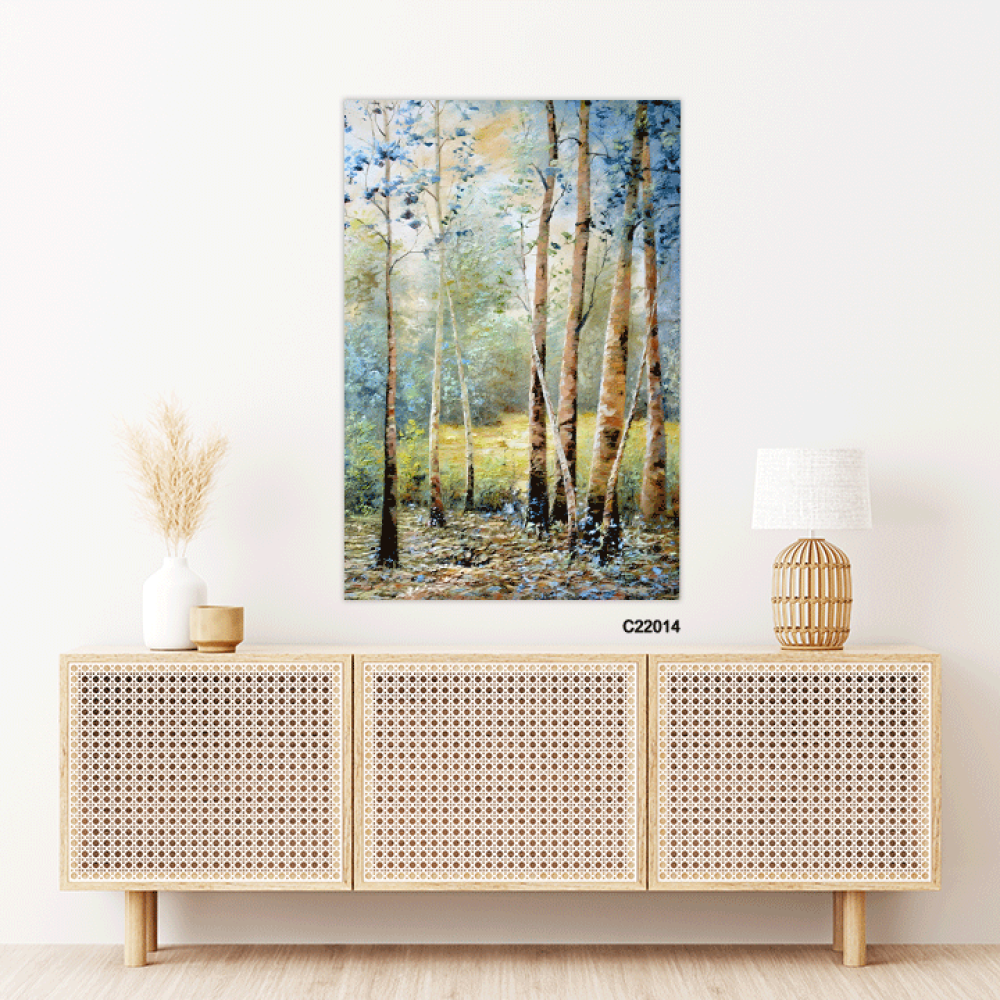 لوحة جدارية كانفس ورد وأغصان شجر تدرجات الأخضر والأزرق مع البني والبيج