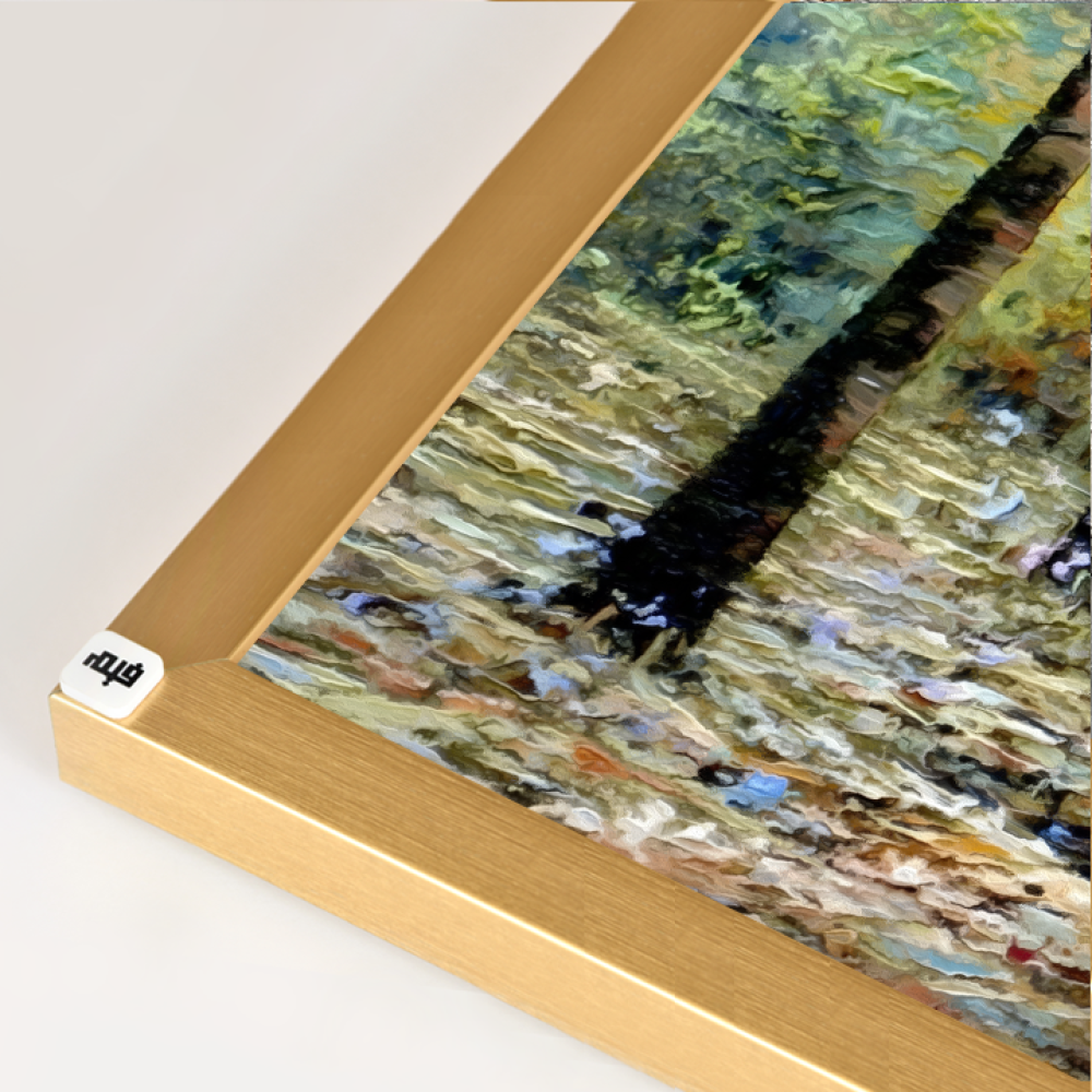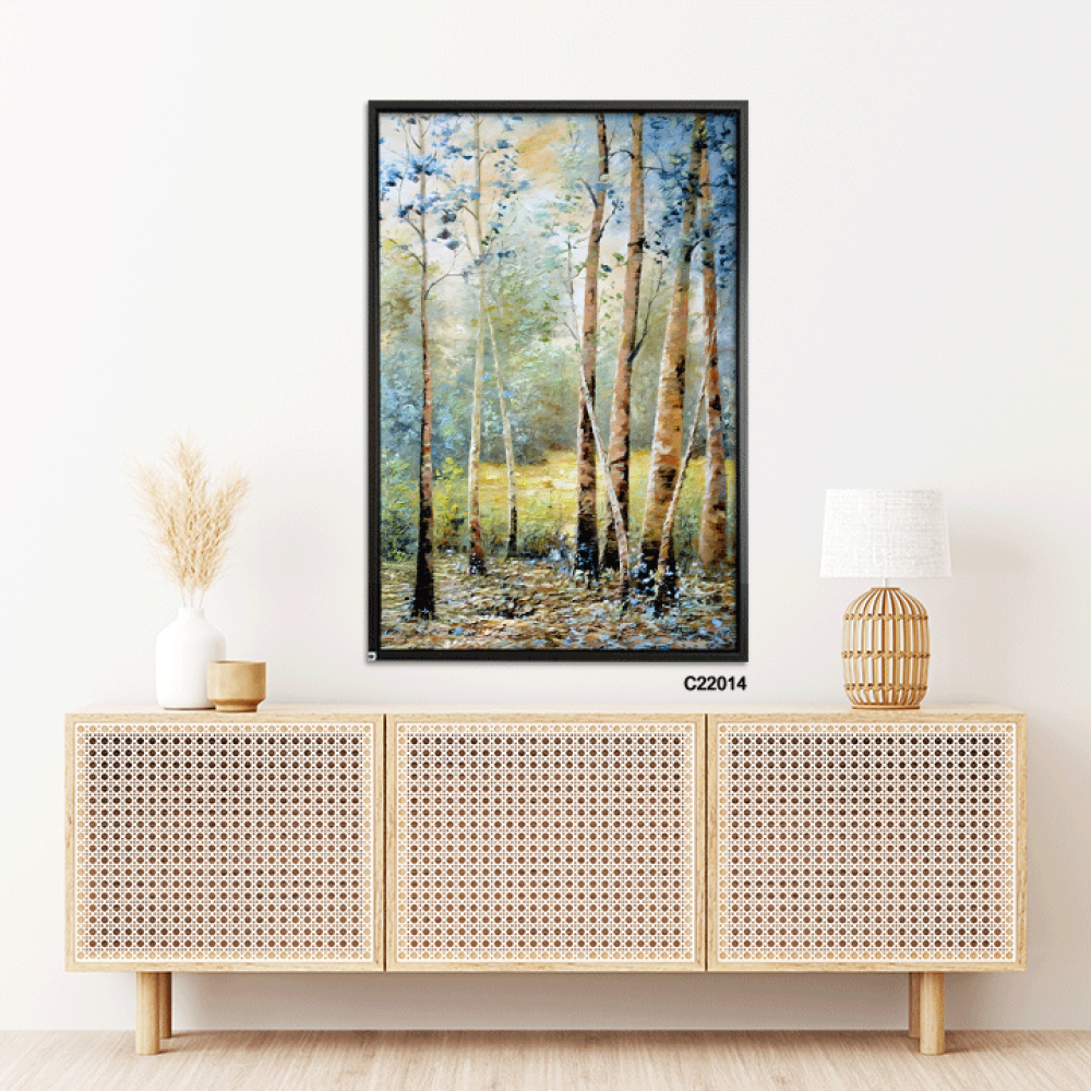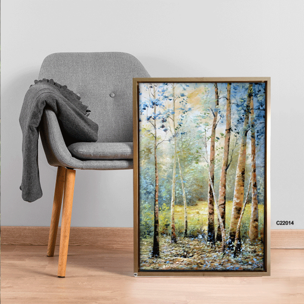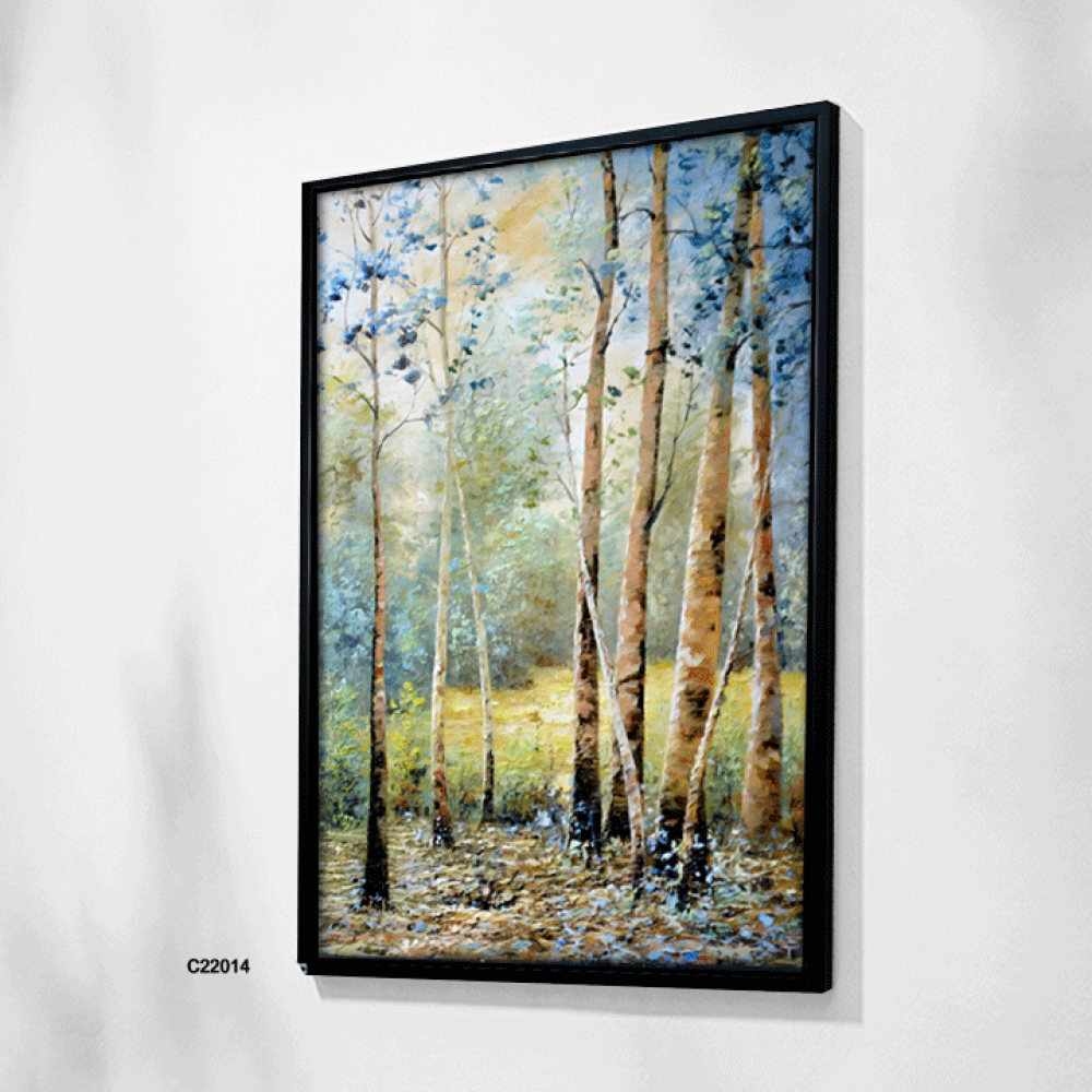 لوحة جدارية كانفس ورد وأغصان شجر تدرجات الأخضر والأزرق مع البني والبيج