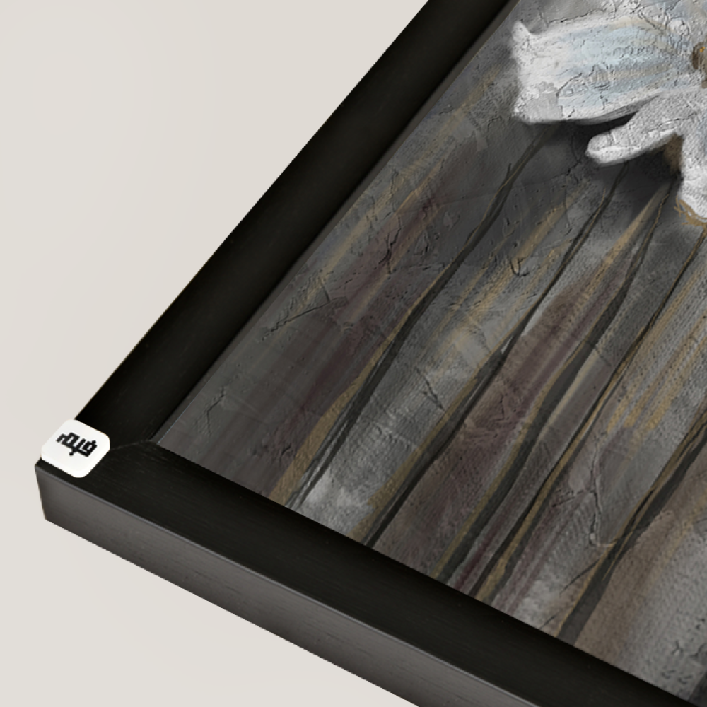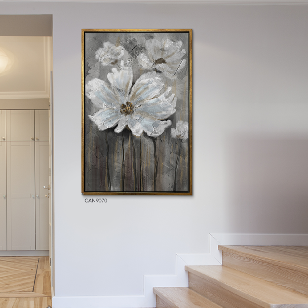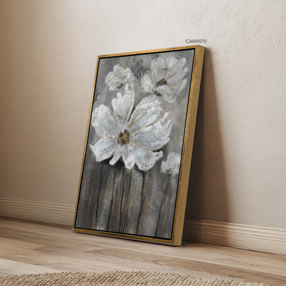 لوحة فنية جدارية كانفس ورود تدرجات الرمادي مع الأبيض والبني - فن تشكيلي