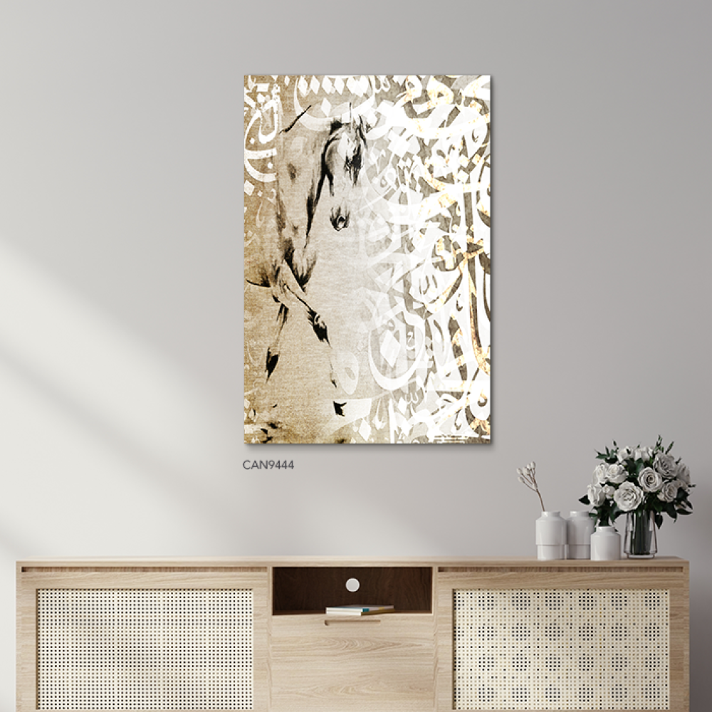 لوحة جدارية كانفس خيل وحروف بخط عربي