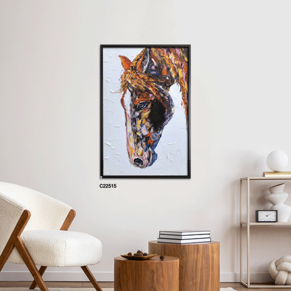 لوحة جدارية كانفس تصور خيلًا بألوان زاهية.