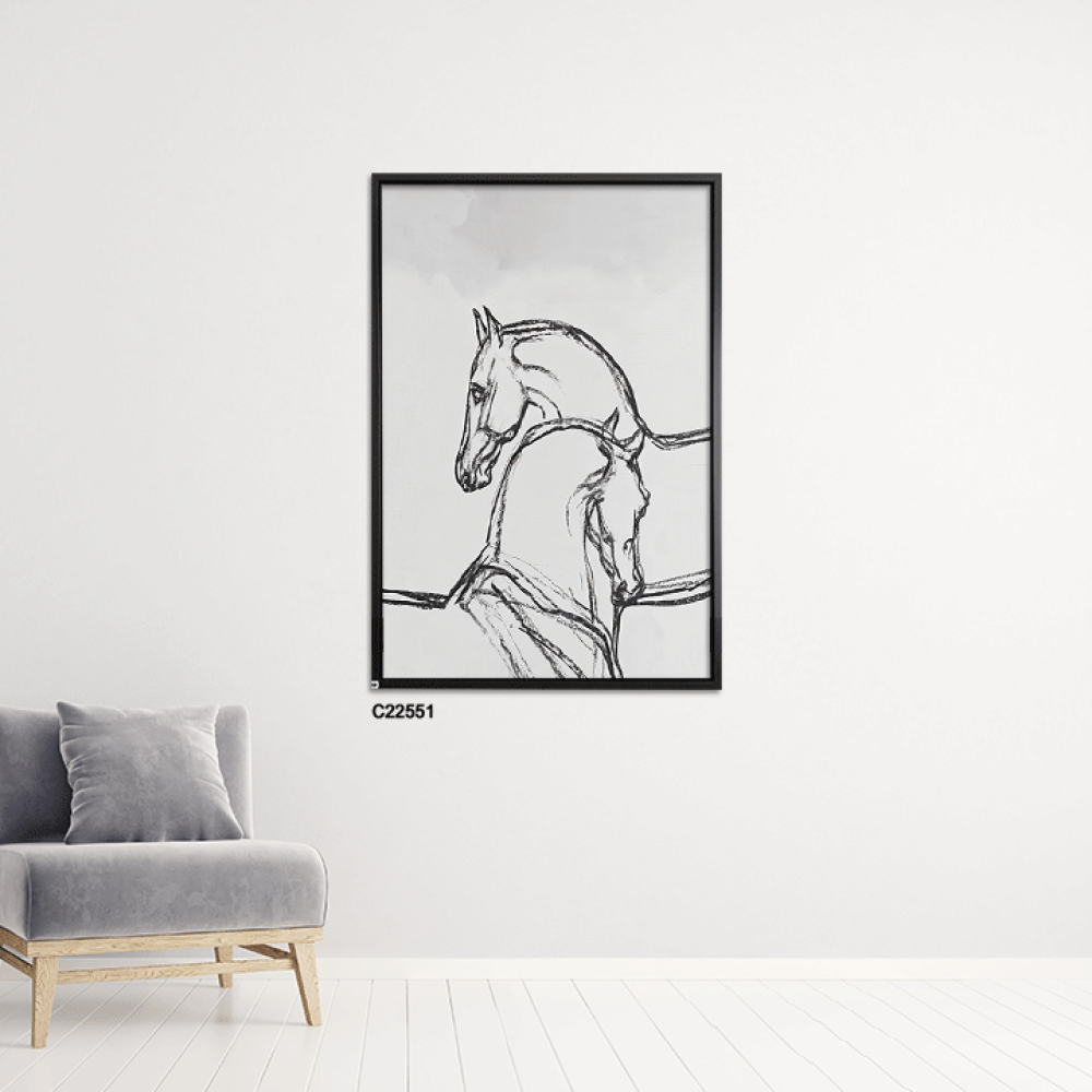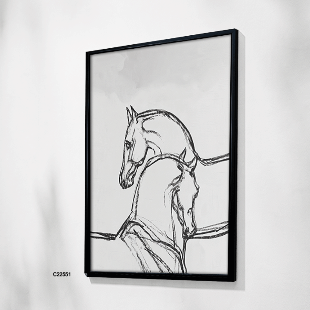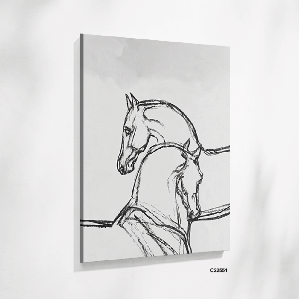 إذا كنت من عشاق الخيول وتبحث عن لوحة جدارية تجمع بين الرقي والبساطة، فهذي اللوحة خيارك المثالي! بتدرجات الرمادي والأسود، تجسد جمال الخيول بانسيابية فر...