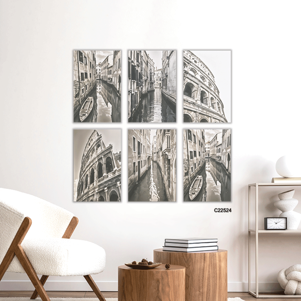 أضف لمسة من السحر الإيطالي إلى منزلك مع مجموعة لوحات جدارية كانفس مستوحاة من المعالم الأثرية والطرق المميزة لمدن إيطالية مختلفة. تتميز هذه المجموعة بت...