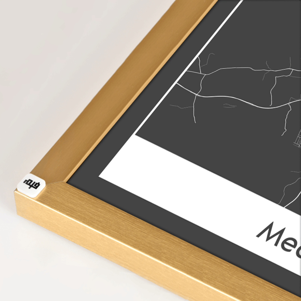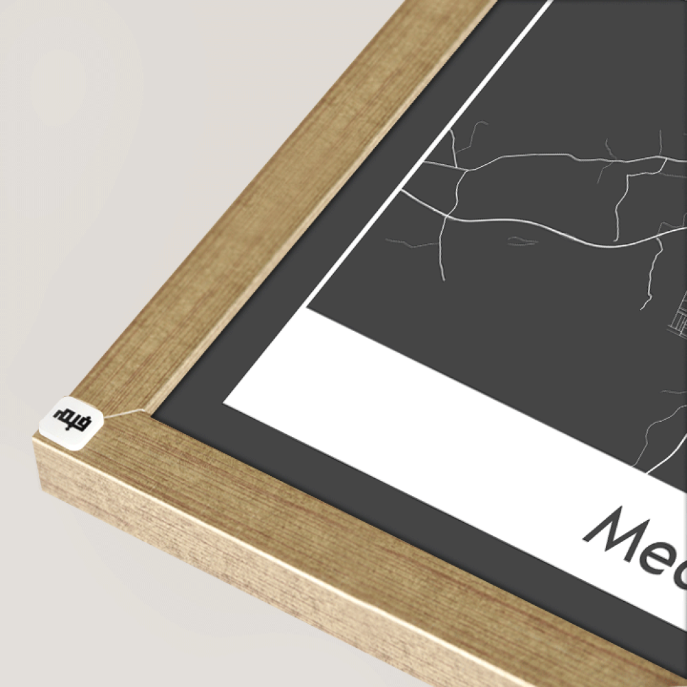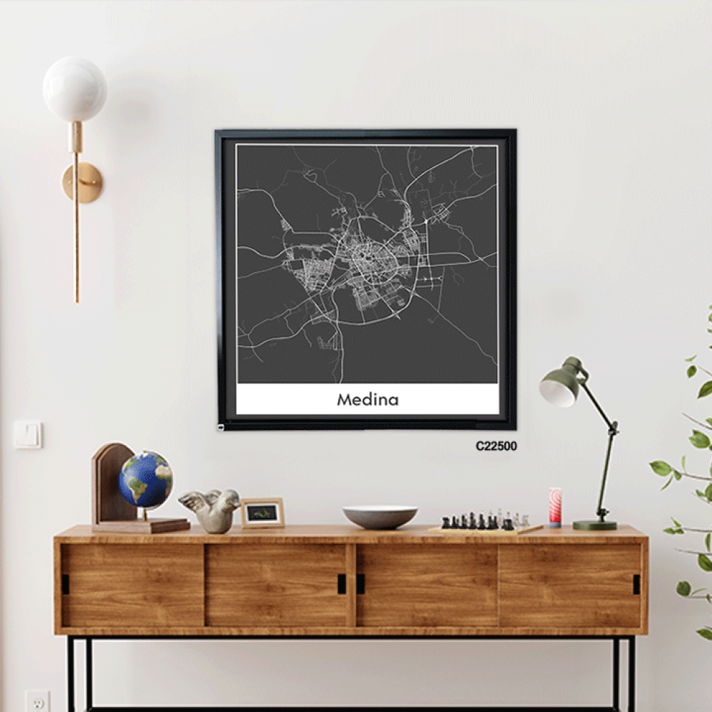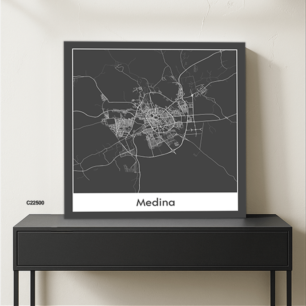 لوحة جدارية كانفس تحتوي على خريطة للمدينة المنورة بالأبيض والأسود