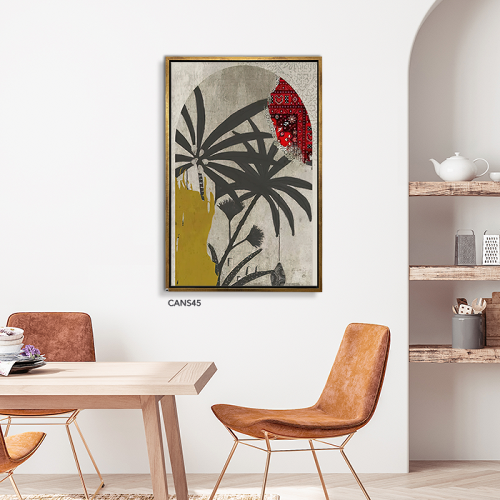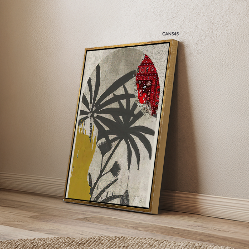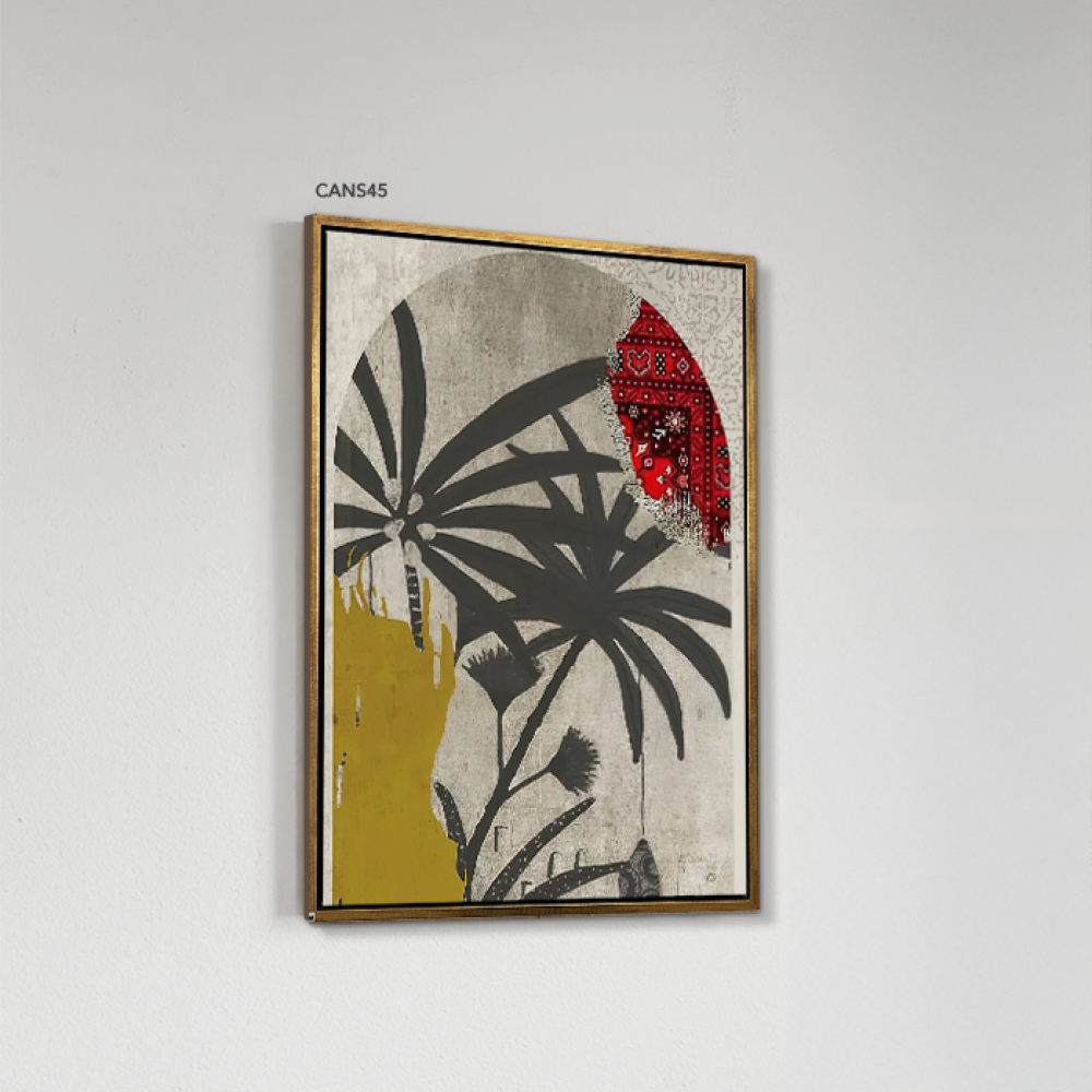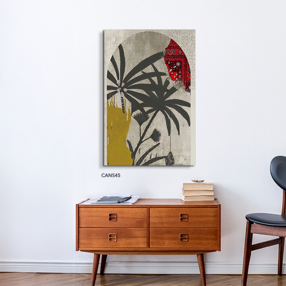 لوحة جدارية كانفس نخل وأوراق تدرجات أخضر ورمادي وأصفر