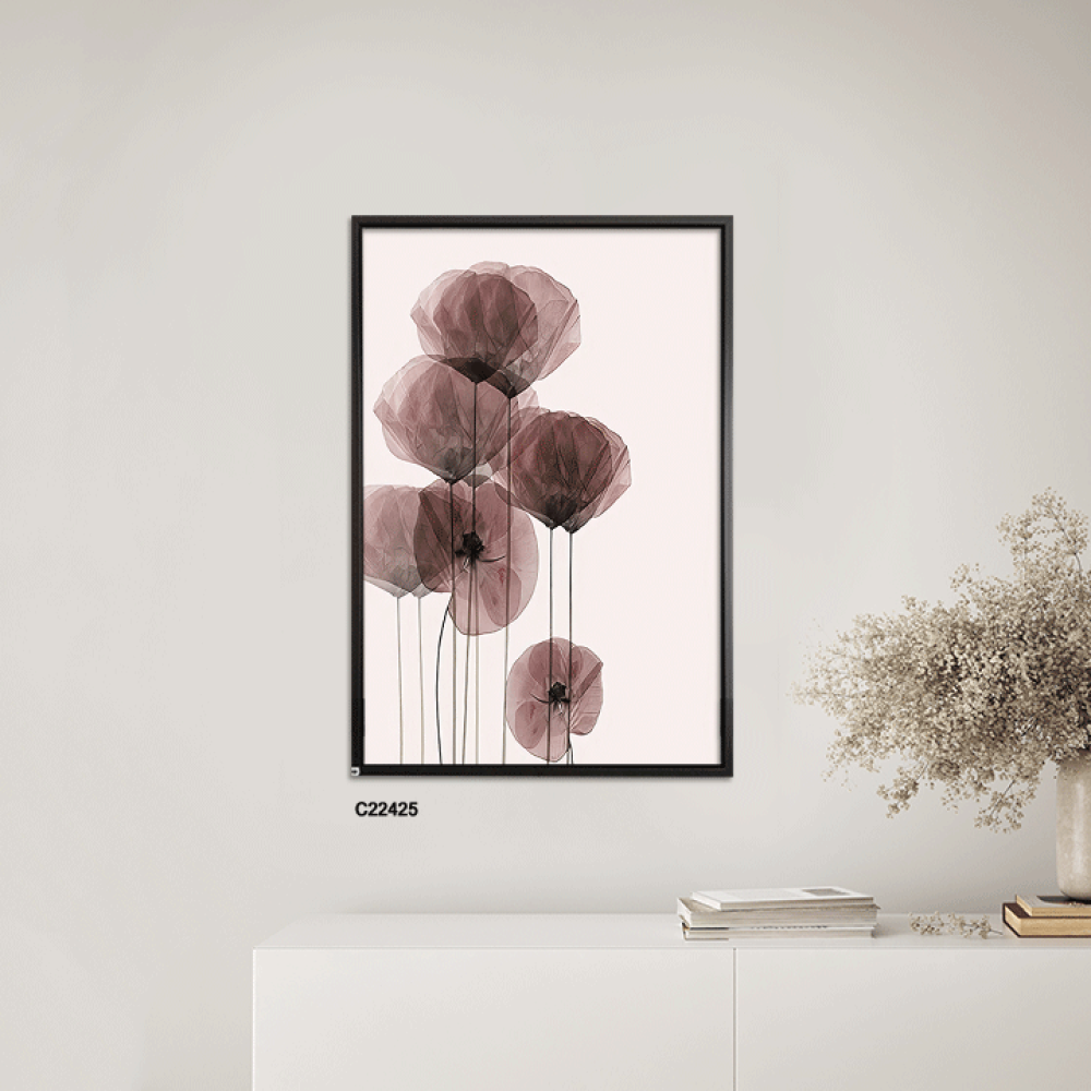لوحة جدارية كانفس ورود تدرجات وردي غامق وابيض