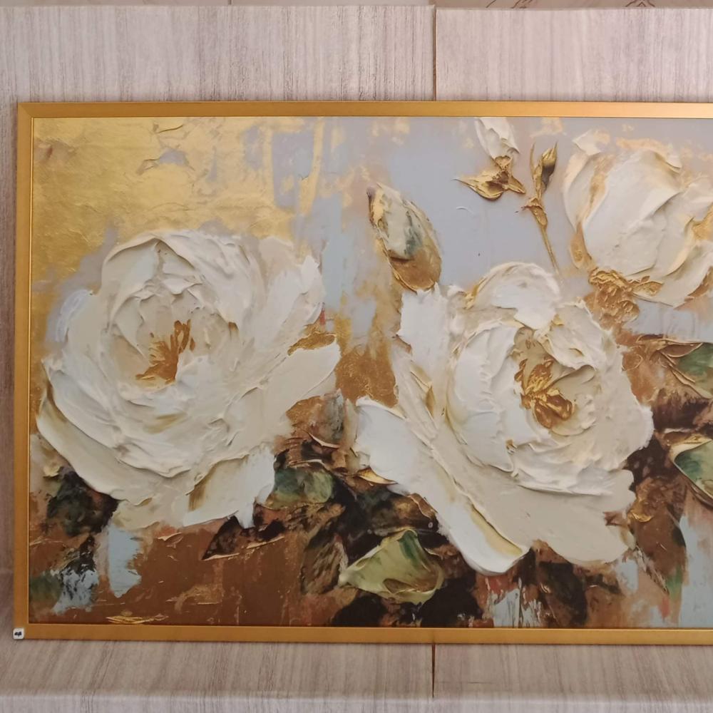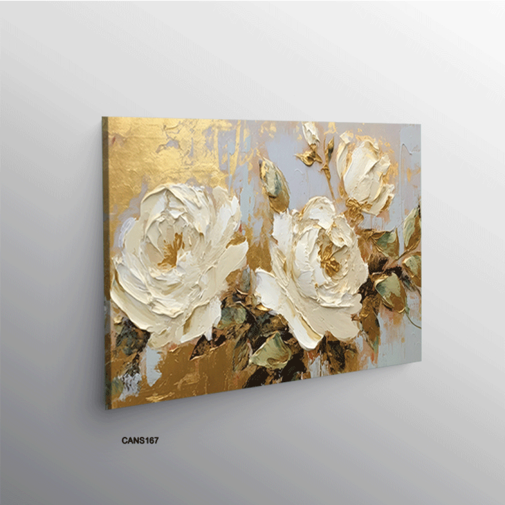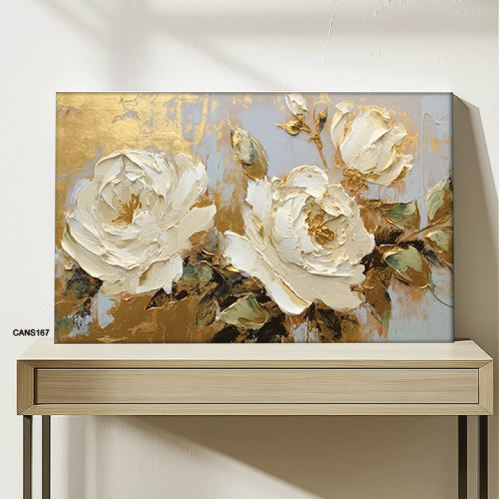 لوحة جدارية كانفس ورود تدرجات الذهبي مع البني والبيج