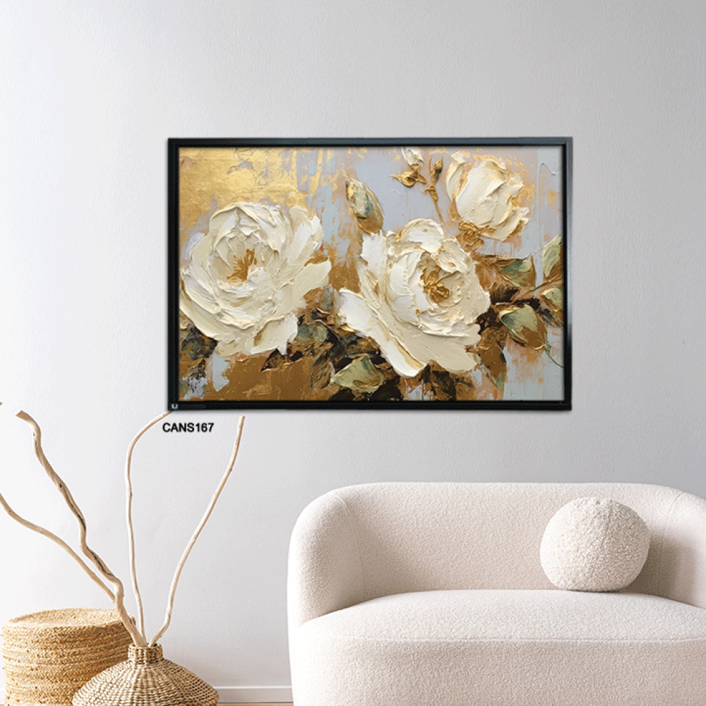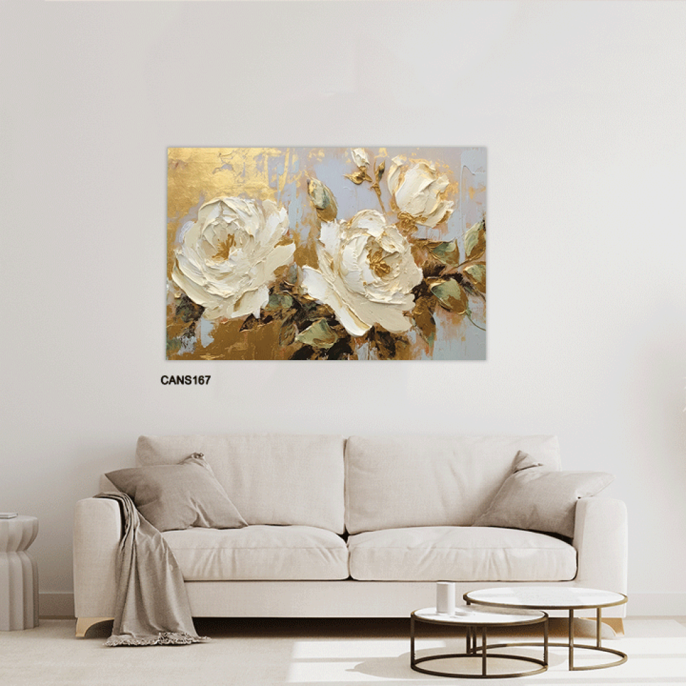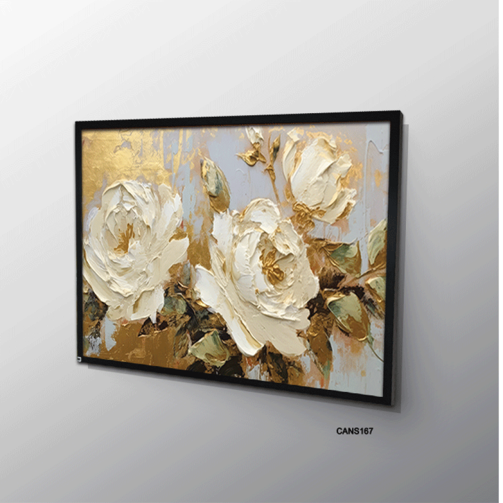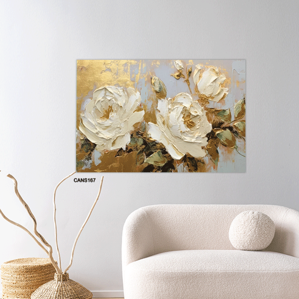 لوحة جدارية كانفس ورود تدرجات الذهبي مع البني والبيج