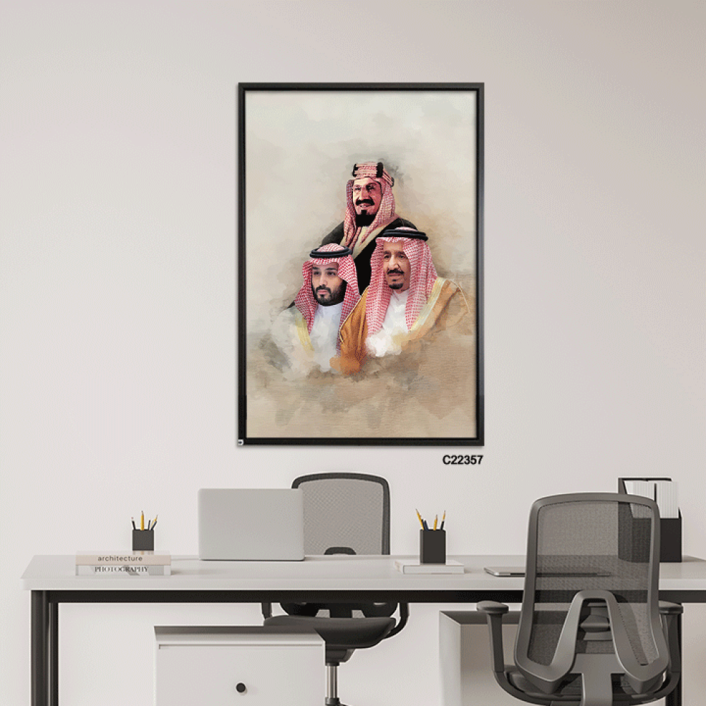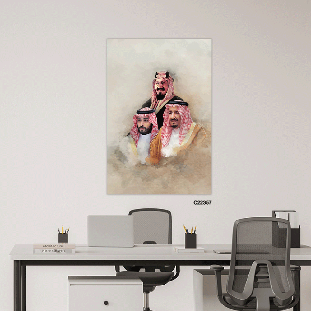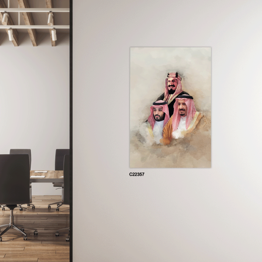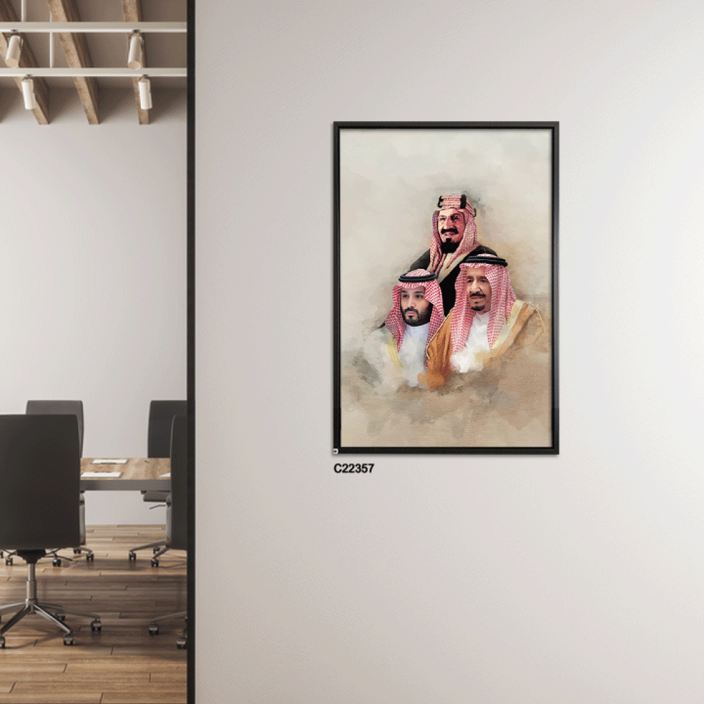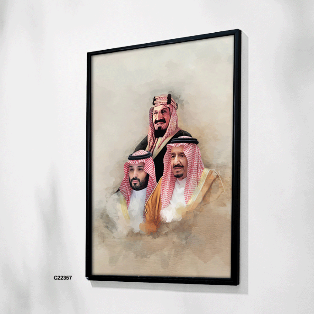 أضف لمسة من الفخامة والرقي إلى ديكورك مع هذه اللوحة الجدارية كانفس التي تجسد قادة المملكة العربية السعودية. تضم اللوحة صورًا للمؤسس الملك عبد العزيز آ...