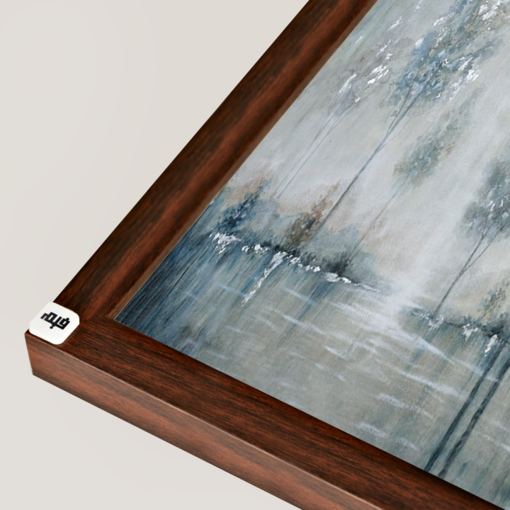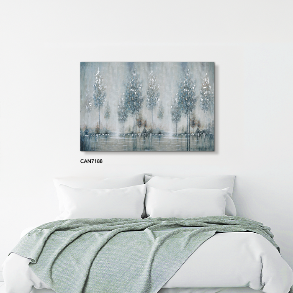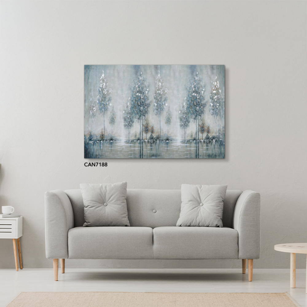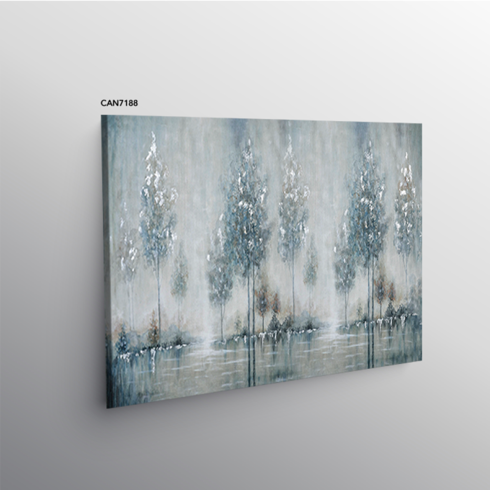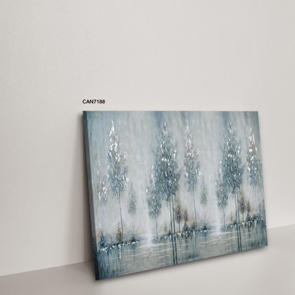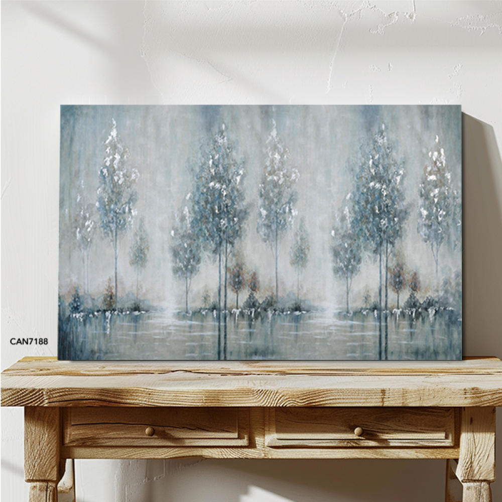 لوحة جدارية كانفس أشجار وثلج اللون الأزرق مع الأبيض والرمادي