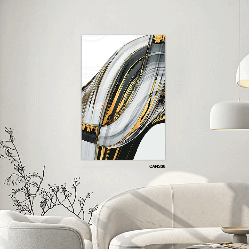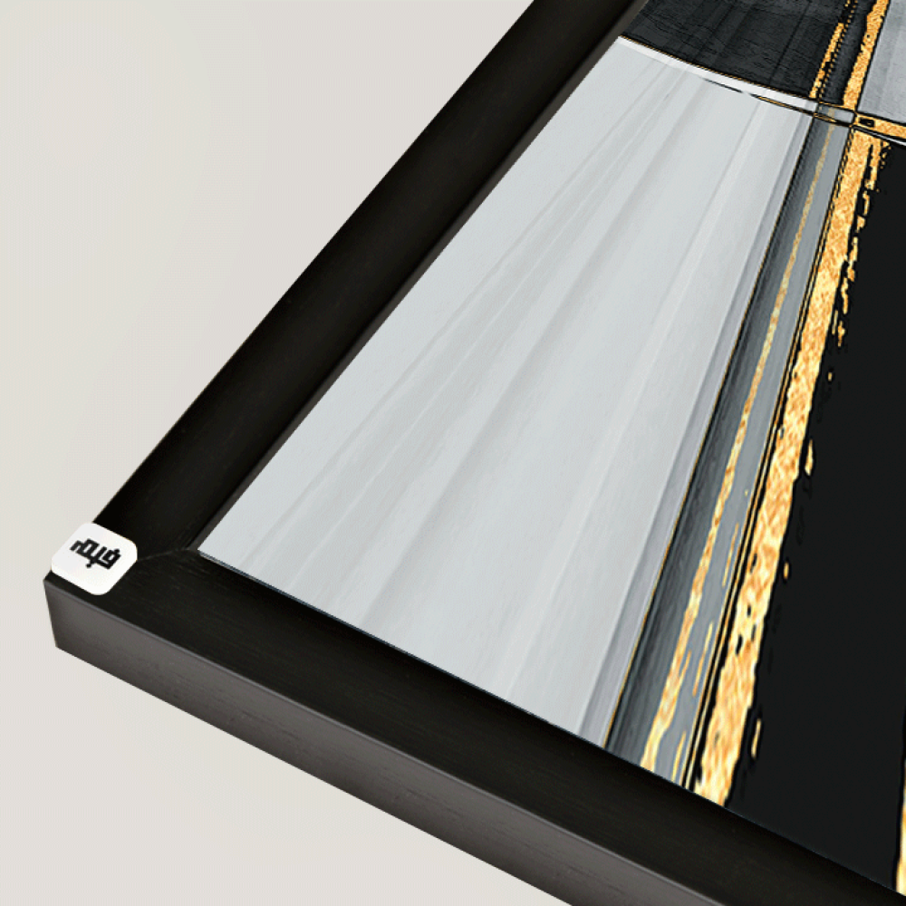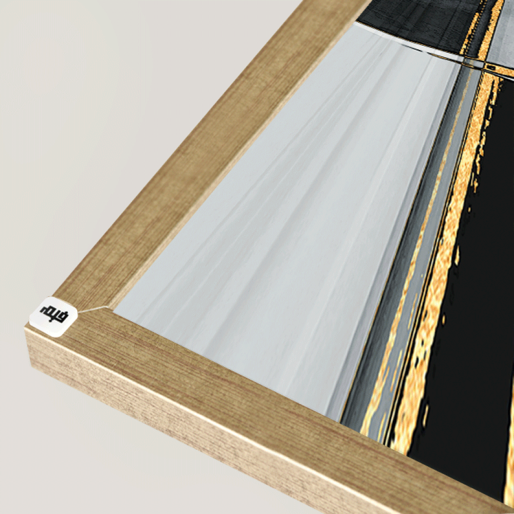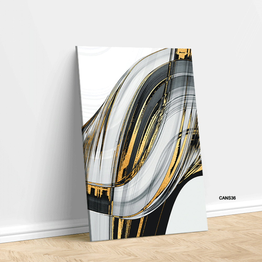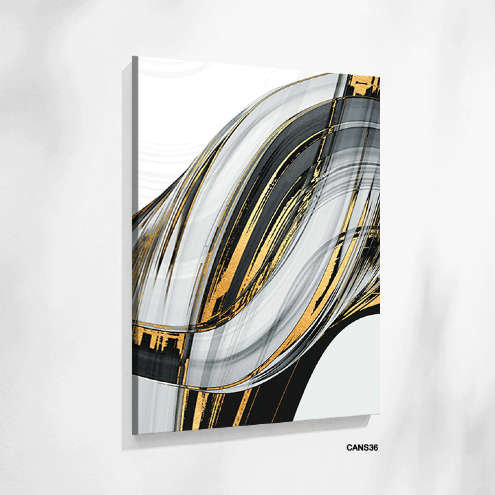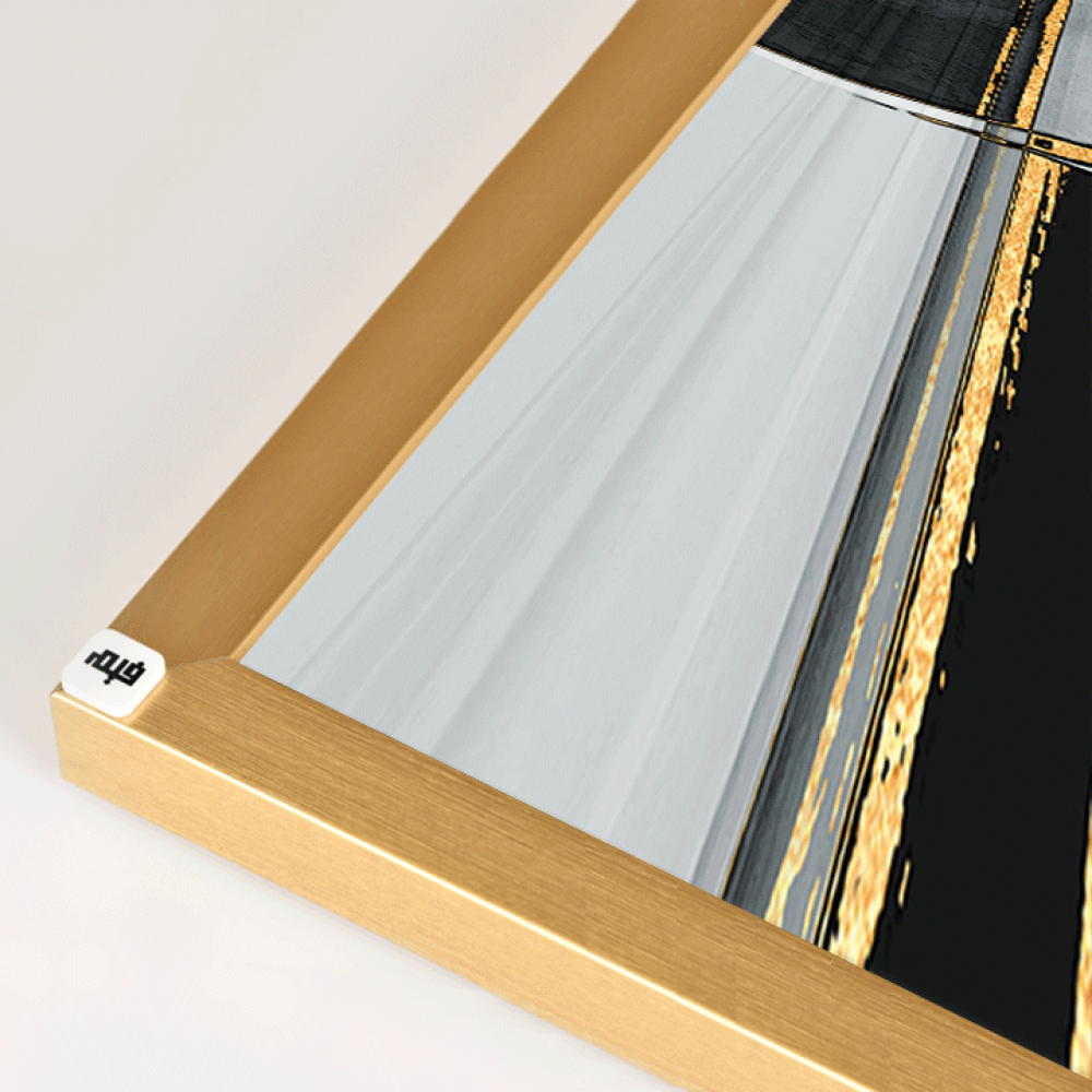 لوحة جدارية كانفس تموجات تدرجات الذهبي وأبيض وأسود