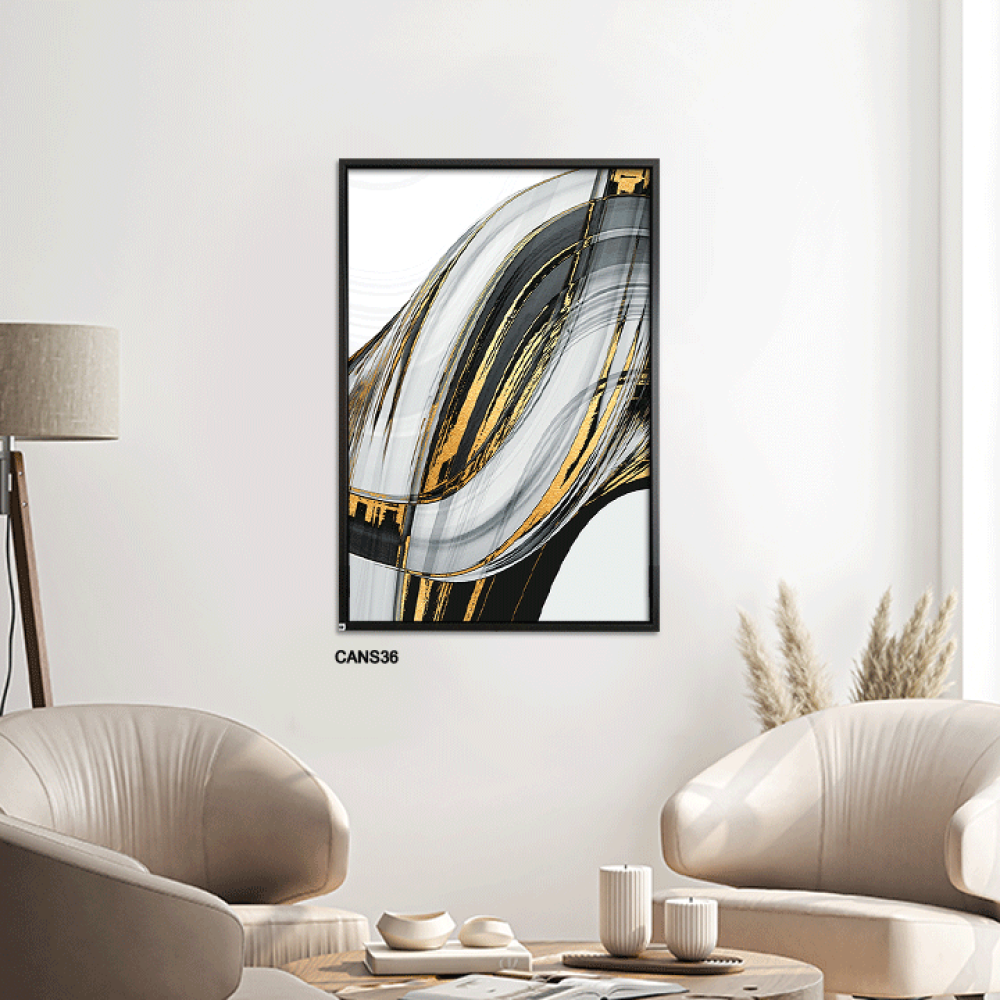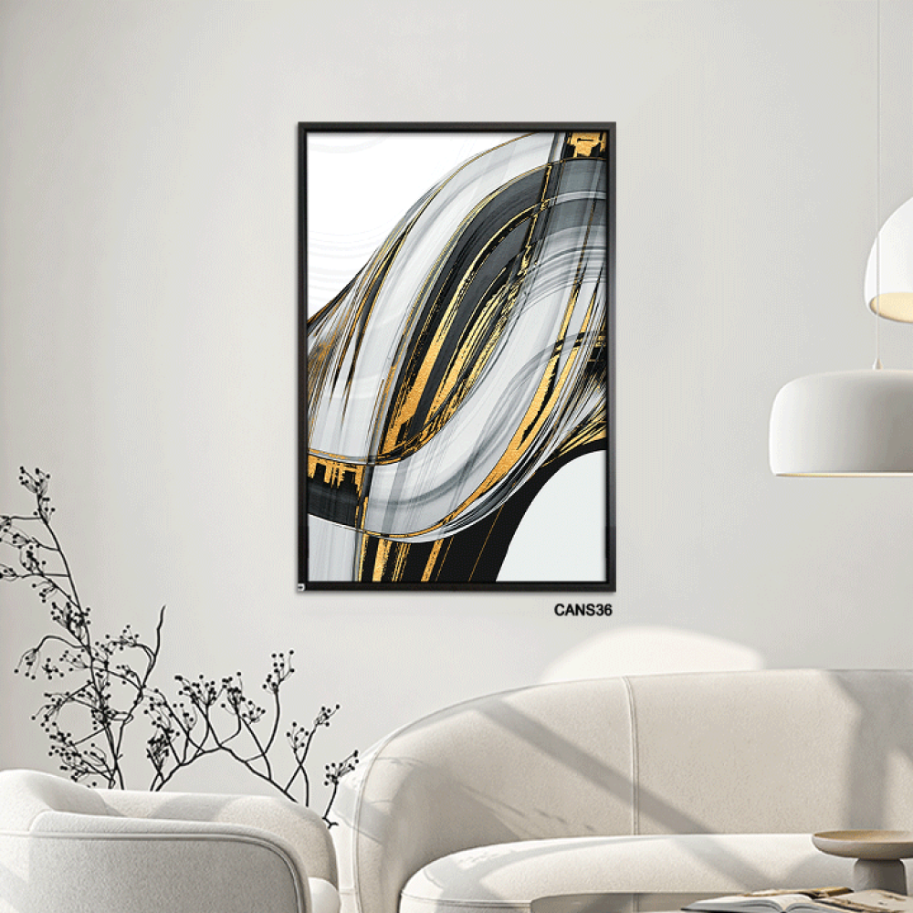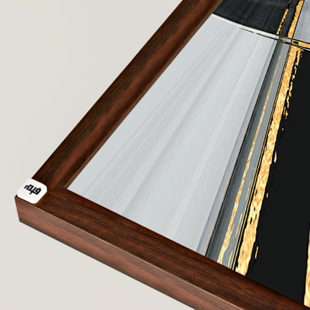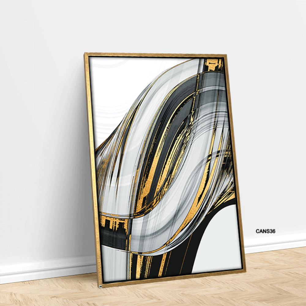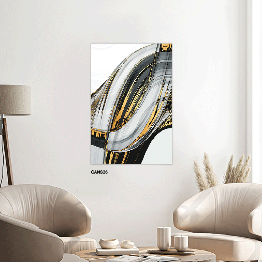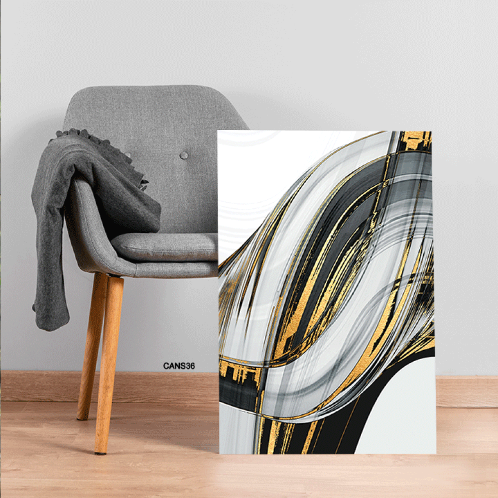 لوحة جدارية كانفس تموجات تدرجات الذهبي وأبيض وأسود