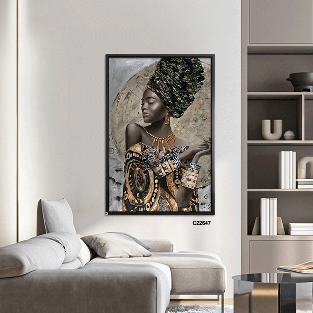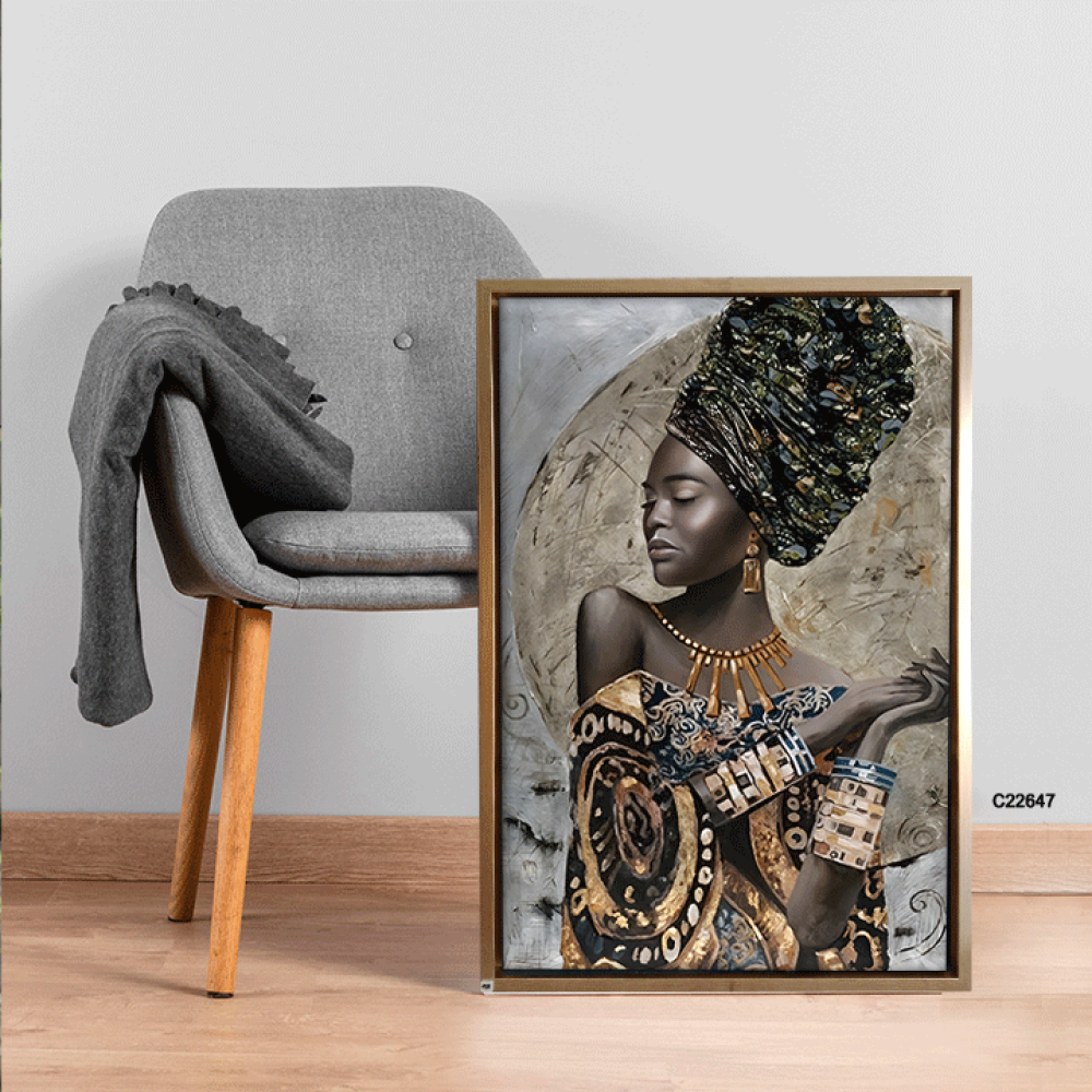 أضف لمسة من الفخامة والتفرد إلى منزلك مع هذه اللوحة الفنية الجدارية التي تصور امرأة إفريقية بملامح جميلة، ترتدي غطاء رأس فاخر مزين بألوان داكنة، متداخلة مع لمسات لامعة تعكس الفخامة والتفرد. الملابس مزخرفة بنقوش دائرية وأشكال هندسية غنية بالألوان المتداخلة بين الذهبي والأسود، مما يخلق توازنًا فنيًا بين الأناقة والترف ويبرز التراث الثقافي الأفريقي بأسلوب عصري وجميل. هذه اللوحة تجمع بين الجمال التقليدي واللمسة العصرية، مما يجعلها إضافة مثالية لأي ديكور يهدف إلى إظهار الذوق الرفيع.مميزات لوحة امرأة افريقية:تصميم فني مبتكر يعكس الثقافة الإفريقية الغنية، مما يجعلها نقطة محورية في أي مساحة.مطبوعة على كانفس عالي الجودة قابل للمسح، مما يضمن الحفاظ على الألوان الزاهية ونظافة اللوحة على مر الزمن.مزودة بإطار خشبي عالي الجودة مع خيارات سماكة تتراوح بين 18 ملم و25 ملم، لتناسب جميع الأذواق.تحتوي على حامل خلفي سهل التركيب، مما يسهل عملية تعليق اللوحة في دقائق معدودة.يمكنك اختيار نوع وشكل الإطار حسب رغبتك، أو اختيارها بدون إطار.تفاصيل المنتج:كود المنتج: C22647الأبعاد: قابلة للتعديل حسب الطلبالمرفقات: مسامير وحامل خلفي جاهز للتثبيتالإطار: يمكن اختيار نوع وشكل الإطار أو بدون إطارالنوع: لوحات كانفس اشخاصالتصنيف: لوحات أشخاصمثالية لتزيين:غرف النومغرف المعيشةالممراتالمساحات الثقافيةإضافة رائعة لجدران منزلك مع لوحة امرأة افريقية ترتدي ملابس تقليدية بتدرجات الذهبي والاسود الفريدة من متجر فيم ستور ، حيث تعكس التميز والفخامة في كل تفاصيلها