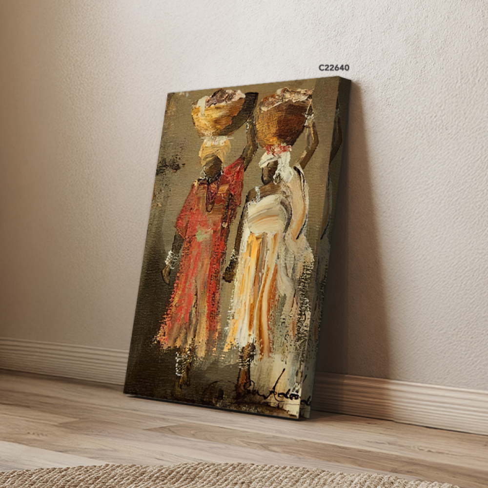 اجعل جدران منزلك تنبض بالحياة مع هذه اللوحة الفنية الجدارية التي تجمع بين الجمال التقليدي والحداثة بأسلوب تجريدي فريد. تصور اللوحة نساء أفريقيات يحملن...