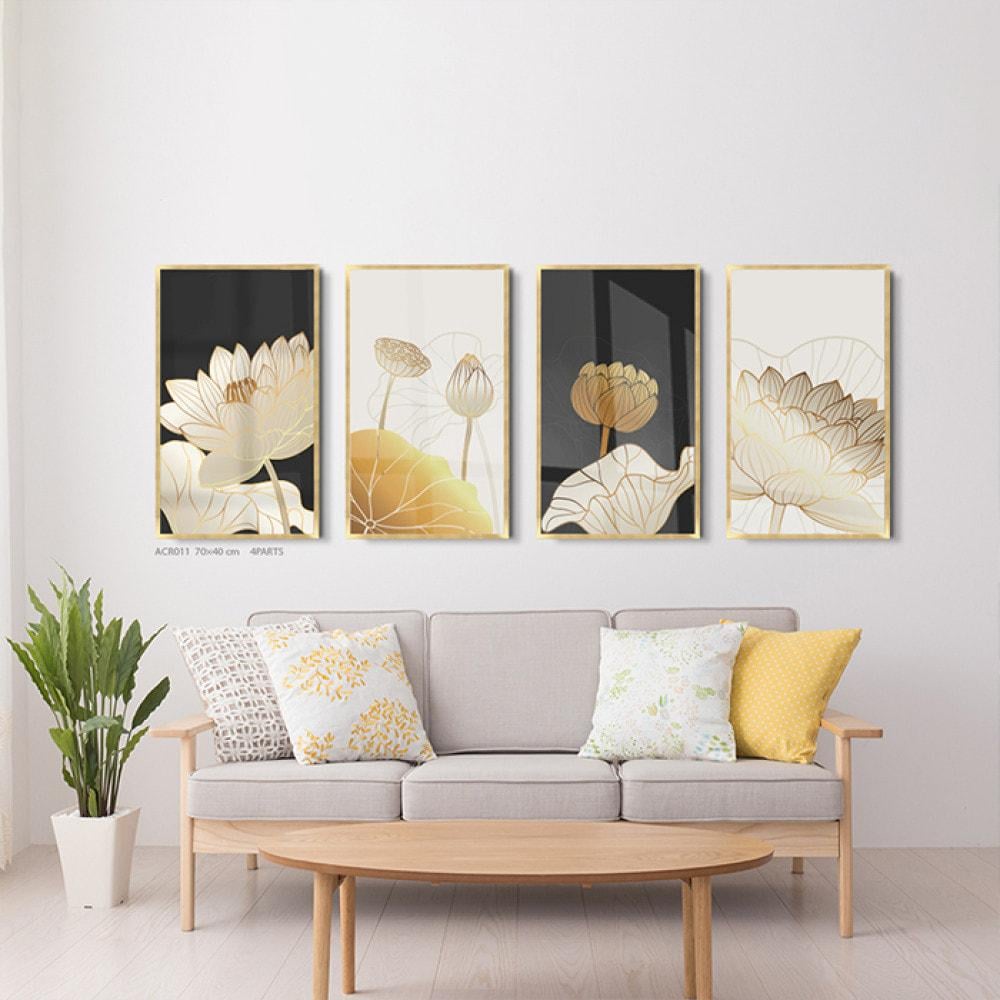 - An acrylic wall panel printed directly with UV technology. Thicknesses vary from 2 mm to 12 mm.- Product code: ACR011- Easy to install because there is a back holder.- Ready for installation (screws or adhesive are included with the order).- Size: Length 70 cm, width 40 cm for each piece.- You can choose the type and shape of the frame or without the frame upon request.- To modify colors, size, or add laser cuttingPlease contact us on WhatsApp at 920031932 .