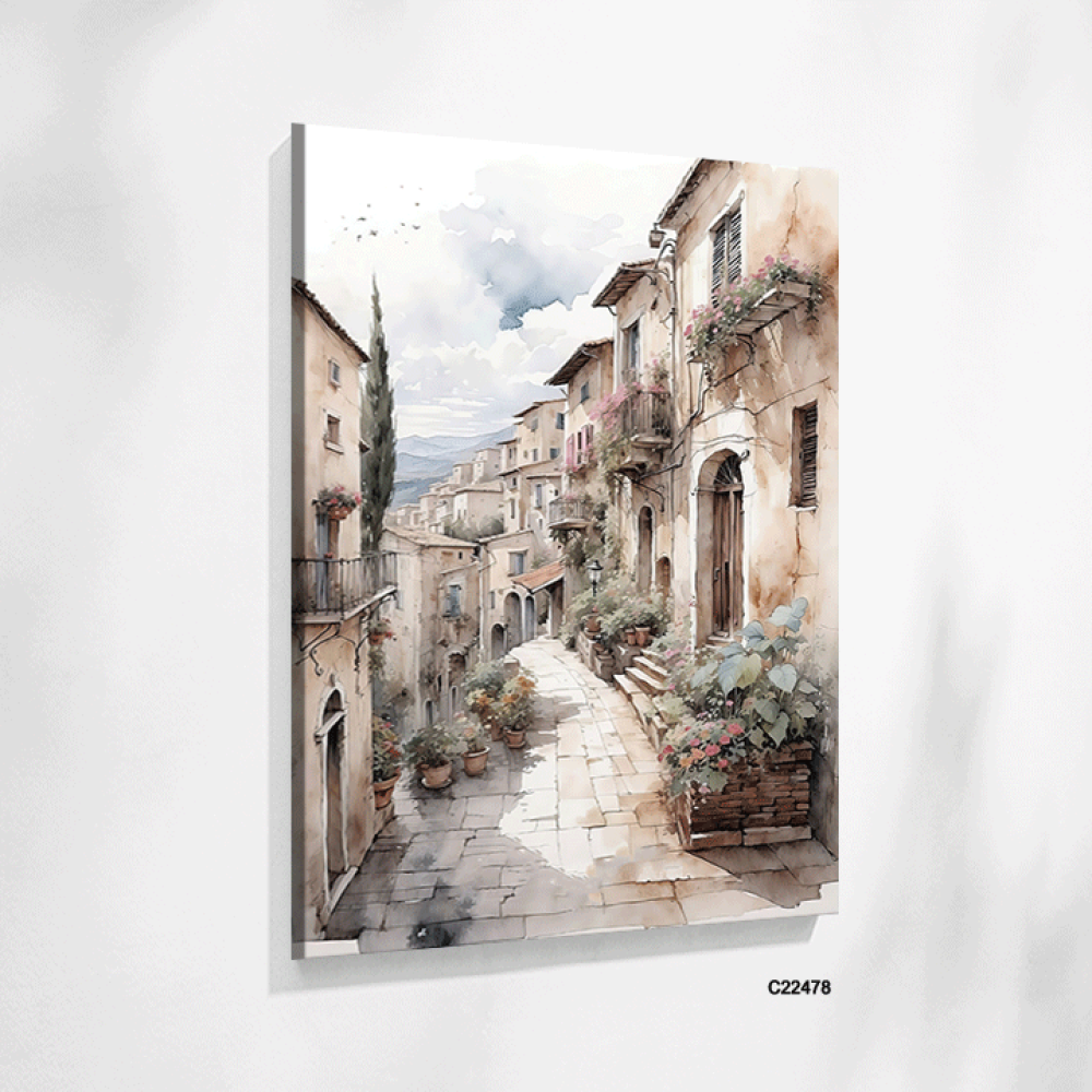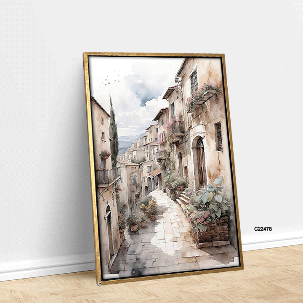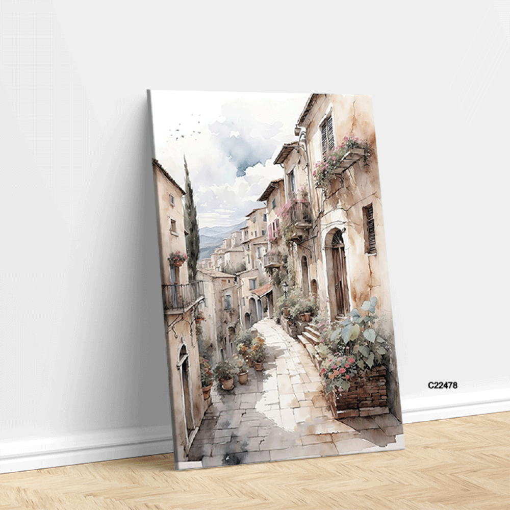 أضف لمسة من الأصالة إلى ديكورك مع لوحة جدارية كانفس تصور بيوتًا قديمة بأسلوب كلاسيكي تراثي. تتميز هذه اللوحة بتدرجات اللون البني مع البيج، مما يبرز جم...