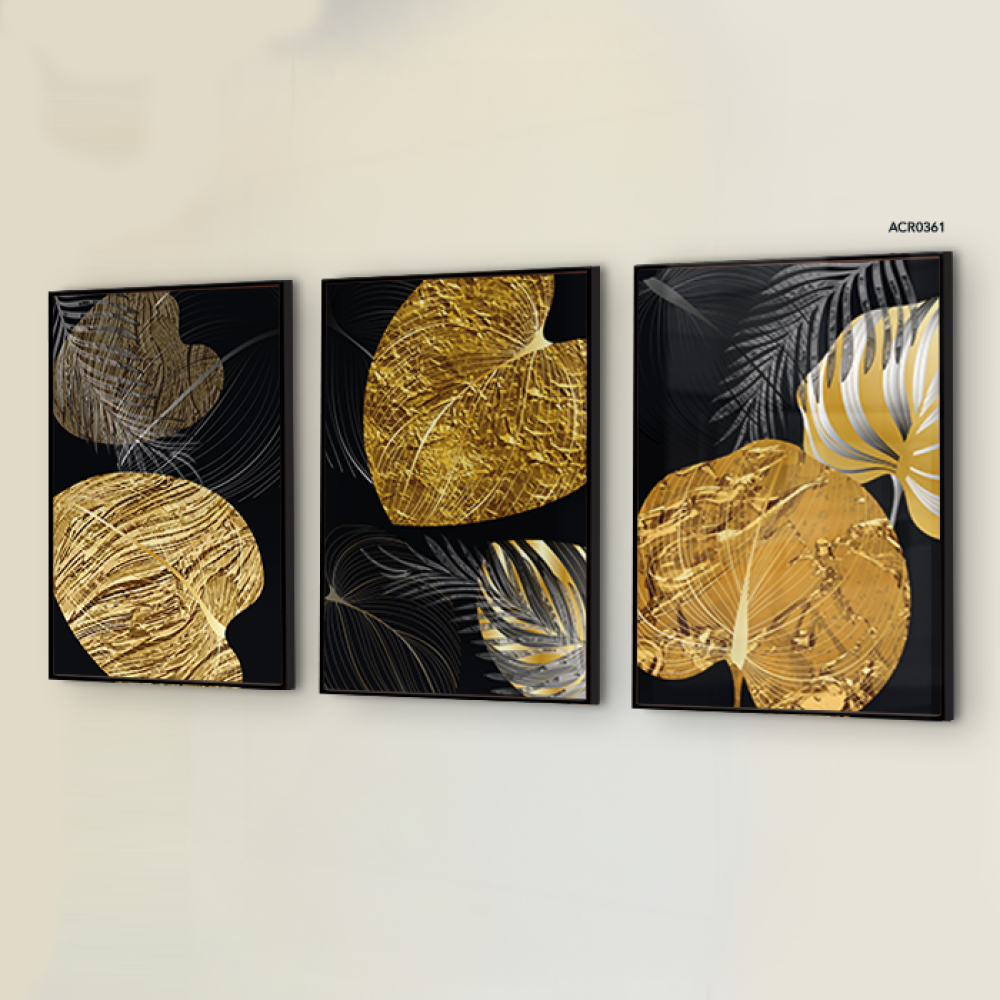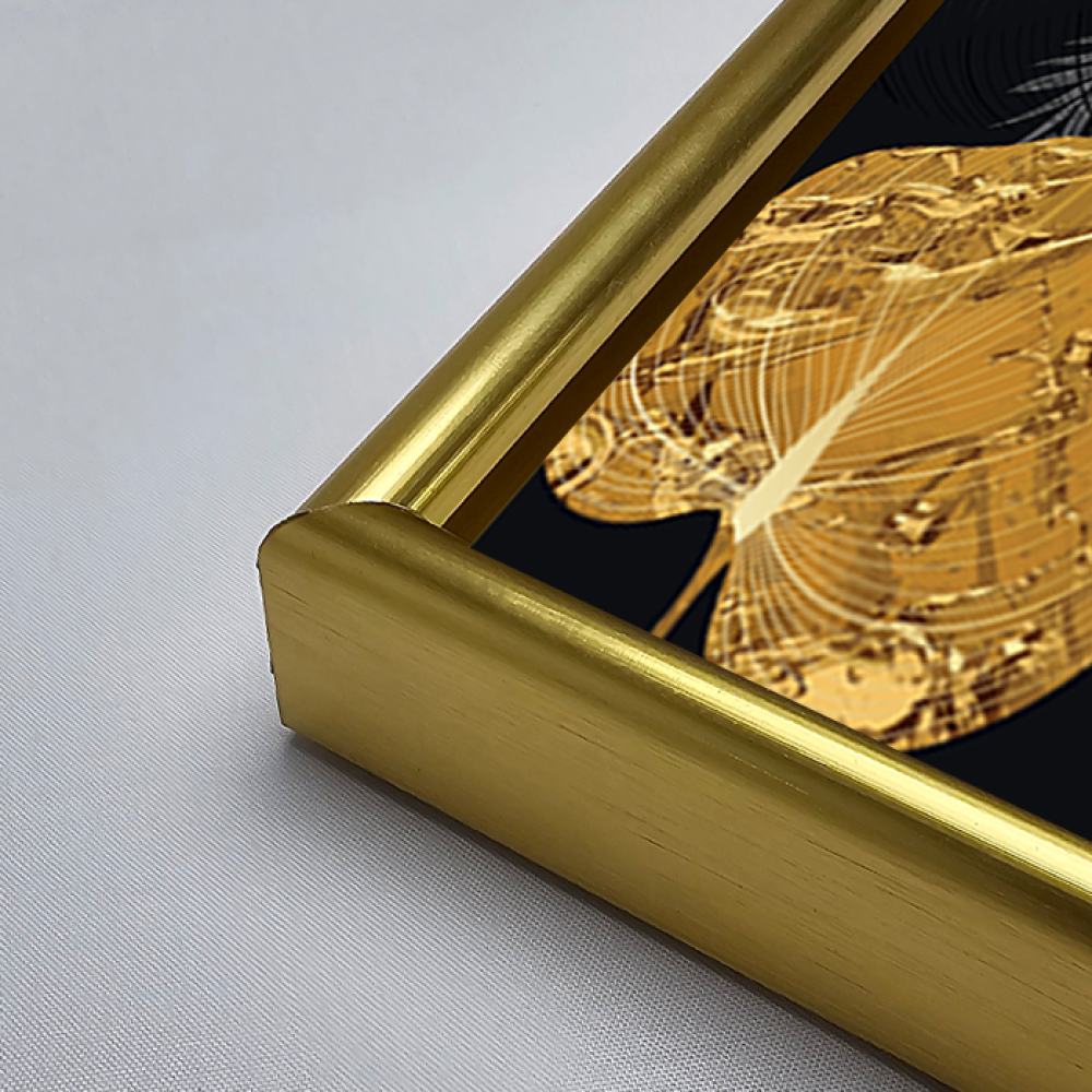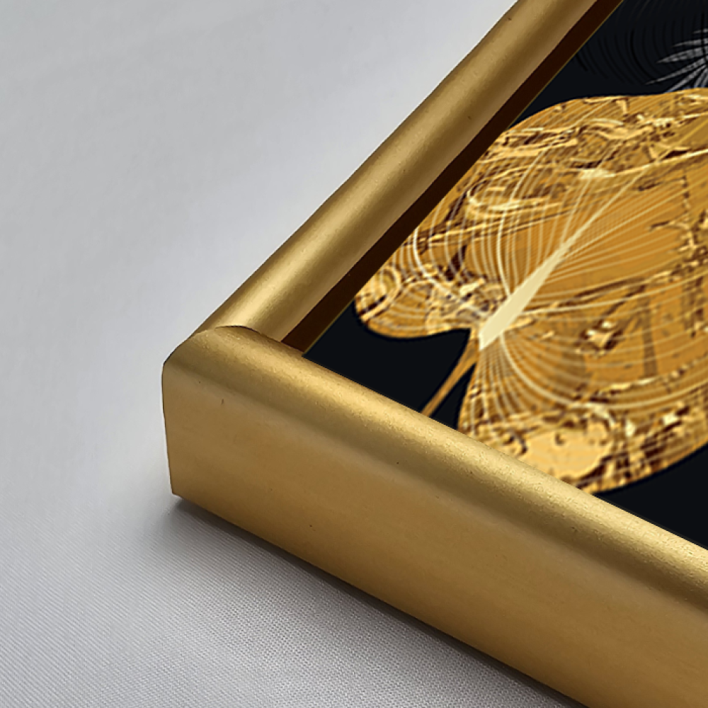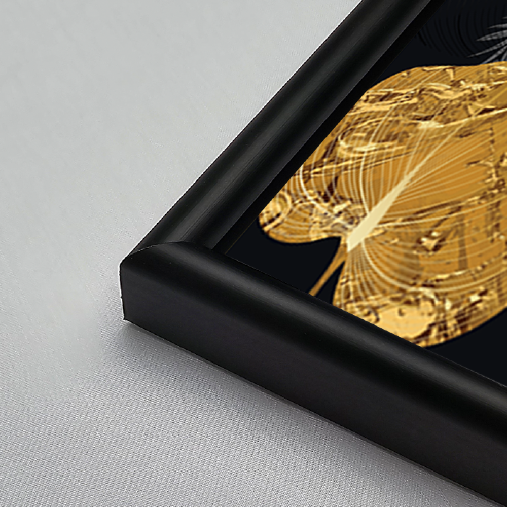 لوحة فنية جدارية رائعة بتصميم يعرض أوراق الشجر بتدرجات الألوان الذهبية والسوداء والبيضاء، حيث يمزج بين الألوان بأسلوب فني لخلق تأثير بصري جذاب يلفت ال...